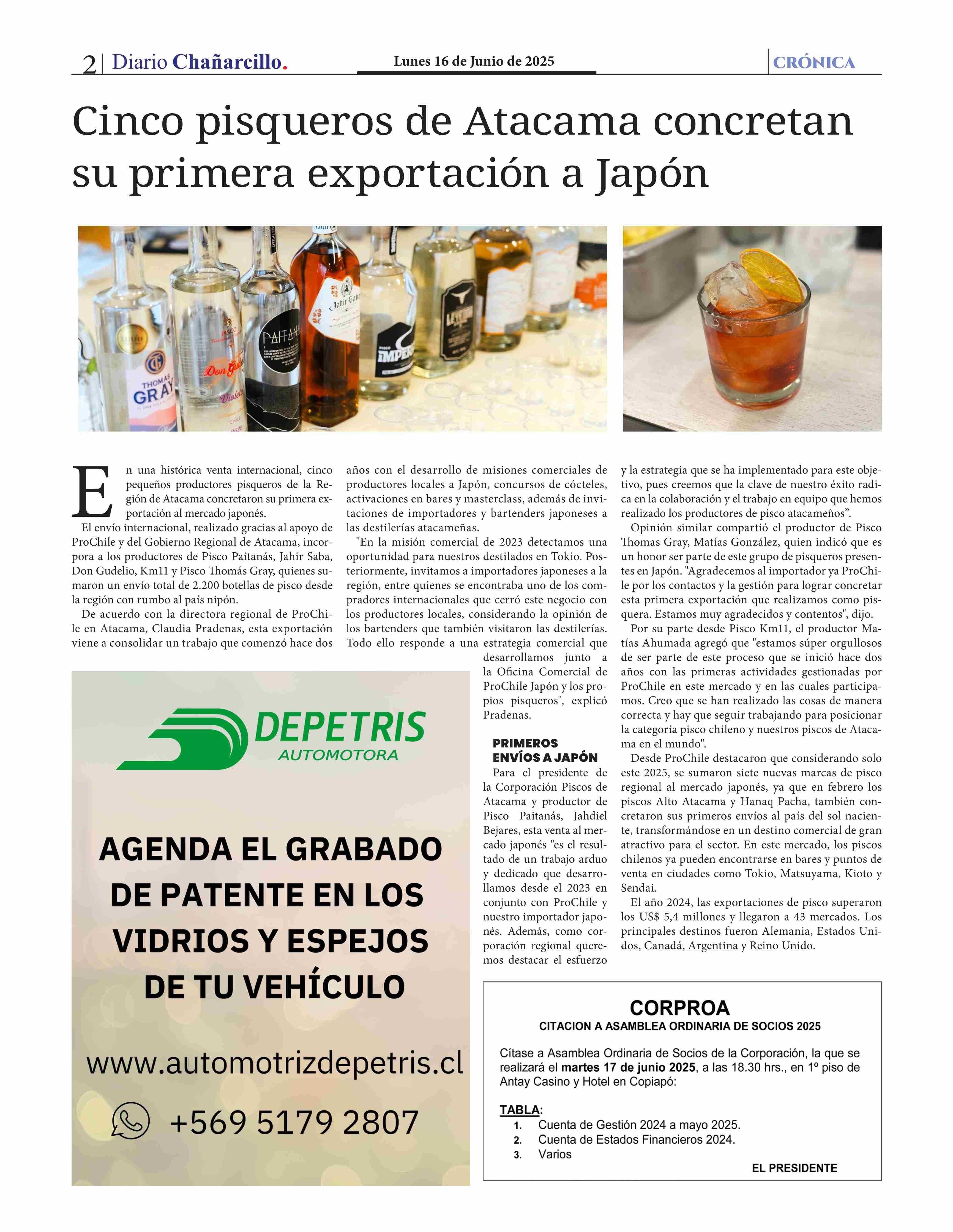 | Título: | Cinco pisqueros de Atacama concretan su primera exportación a Japón |