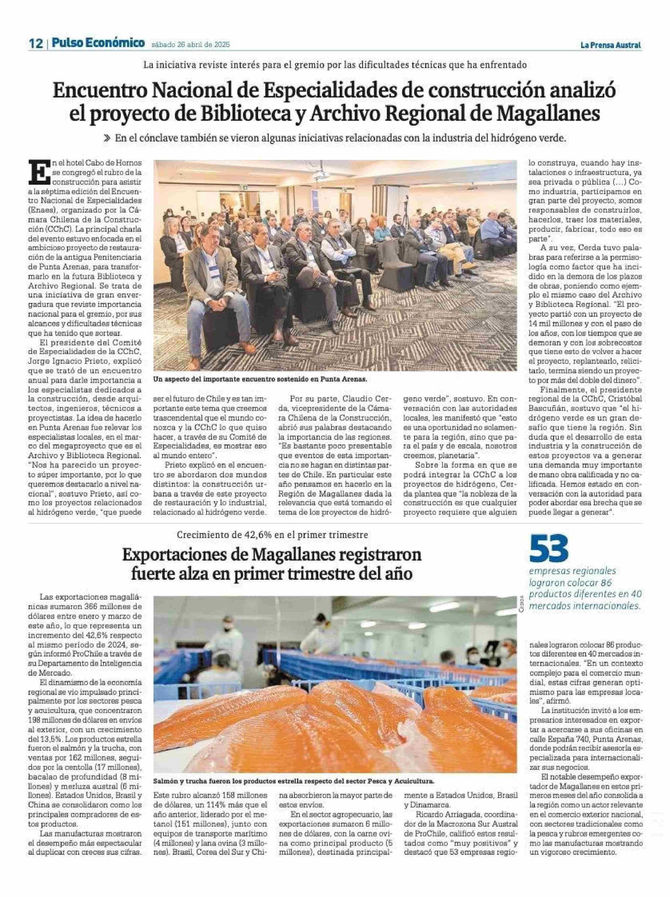 Encuentro Nacional de Especialidades de construcción analizó el proyecto de Biblioteca y Archivo Regional de Magallanes 26-04-2025 La Prensa Austral |