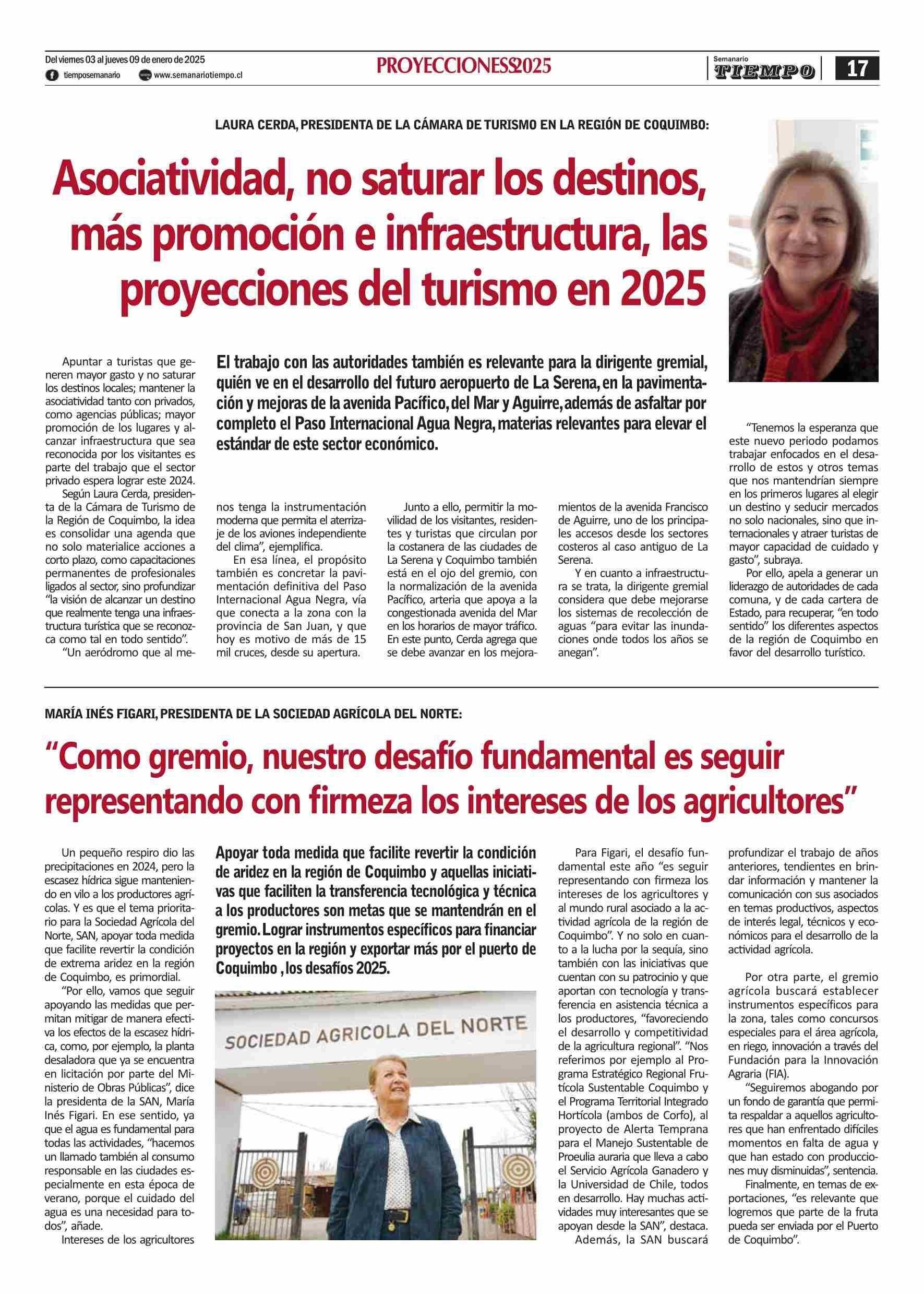 Asociatividad, no saturar los destinos, más promoción e infraestructura, las proyecciones del turismo en 2025 03-01-2025 Semanario Tiempo |