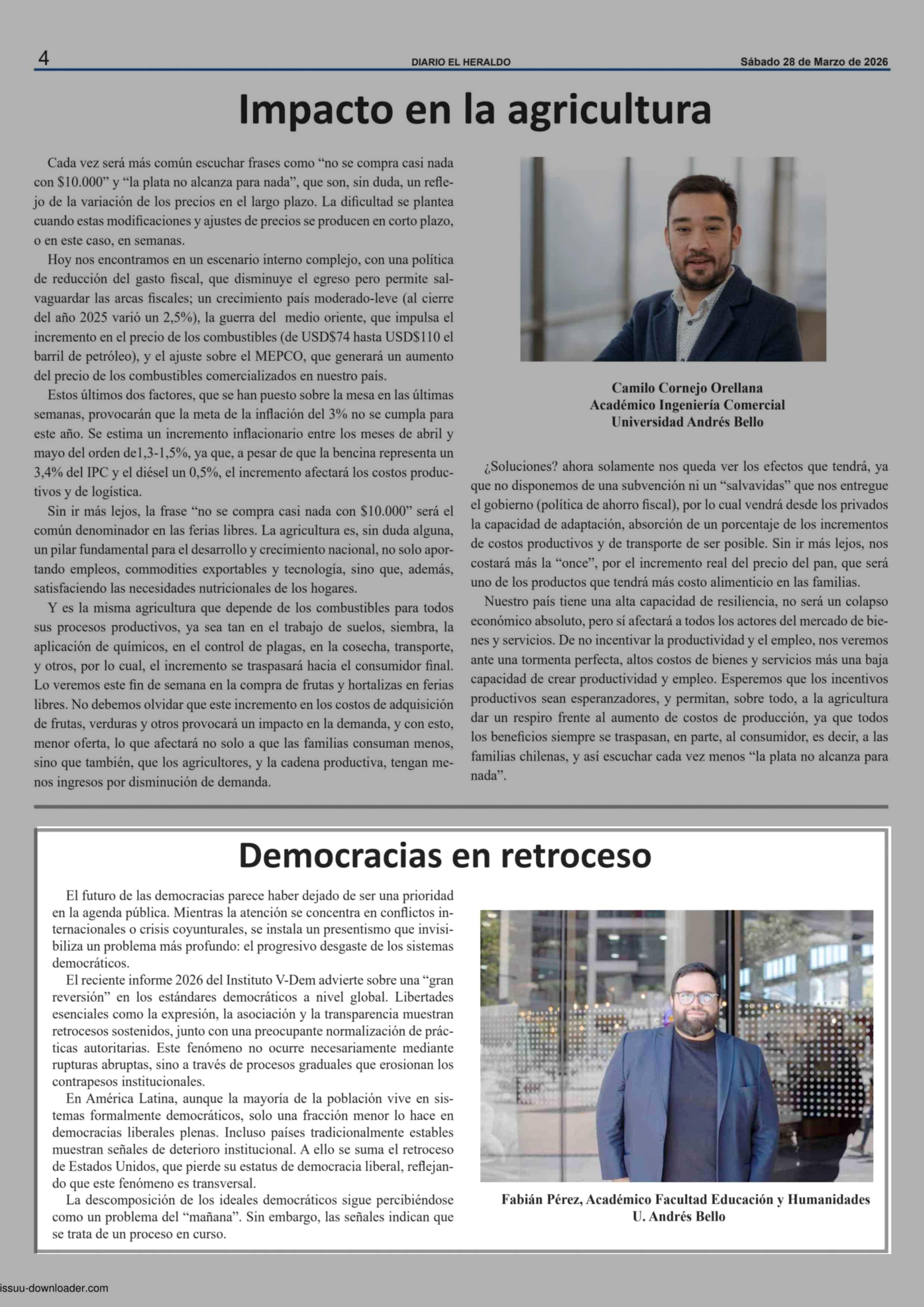 Columnas de Opinión: Democracias en retroceso 28-03-2026 El Heraldo |