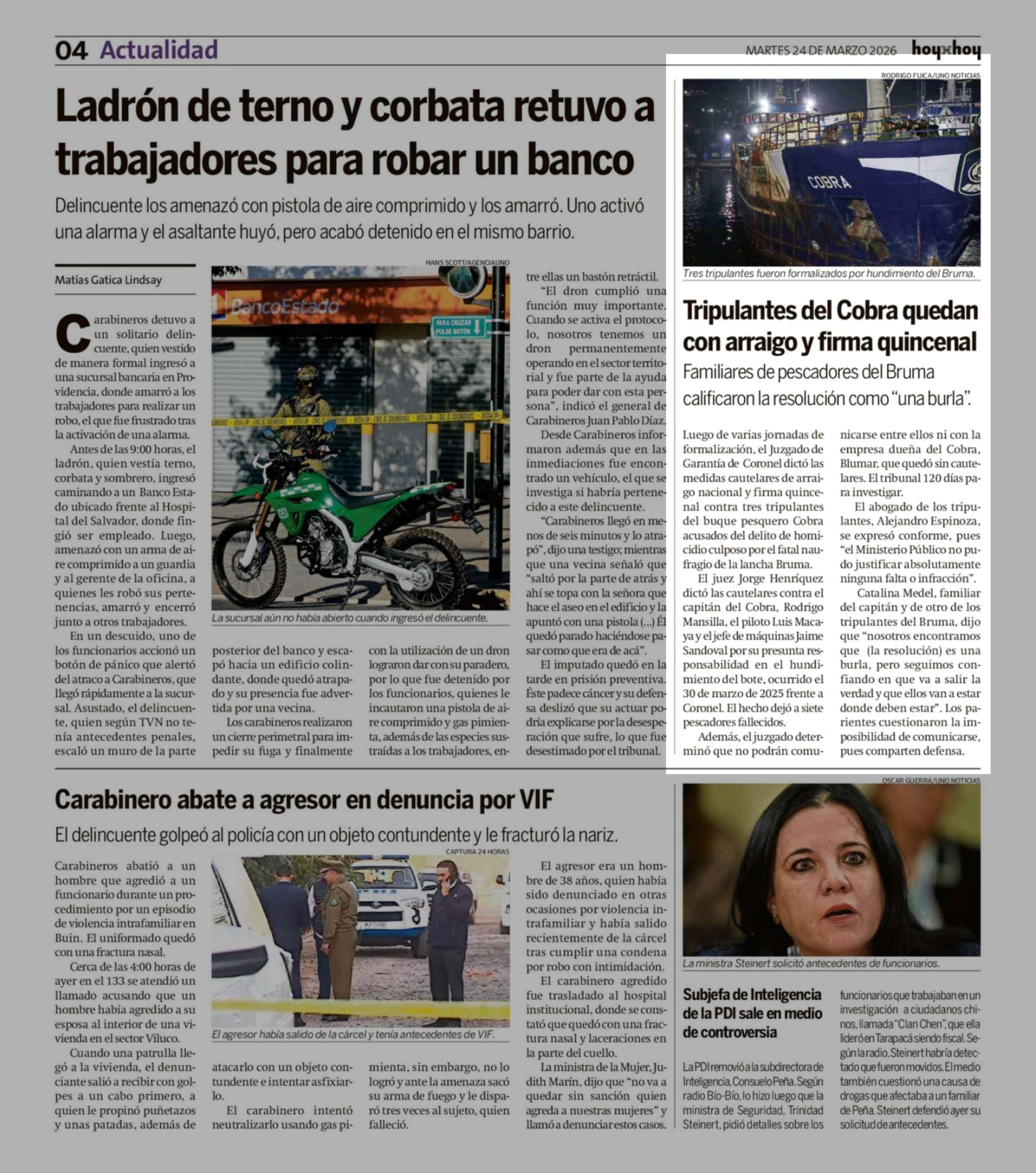 Tripulantes del Cobra quedan con arraigo y firma quincenal 24-03-2026 Hoy x Hoy |