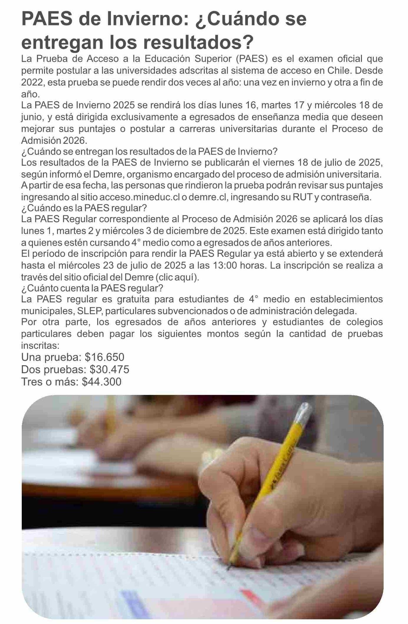 Título: PAES de Invierno: ¿Cuándo se entregan los resultados?