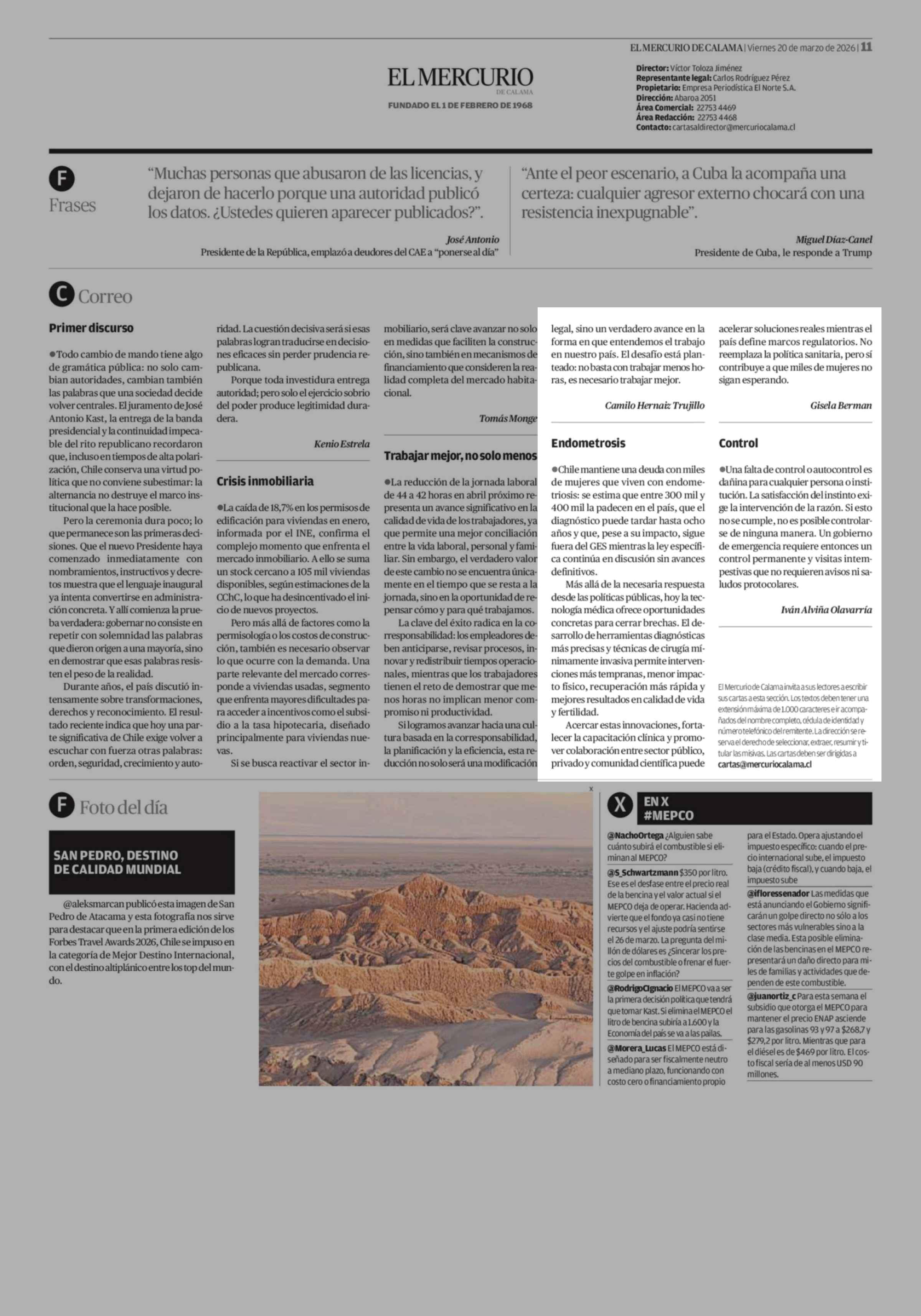 Fecha: 20-03-2026 Sector: Cartas Región: Región de Antofagasta