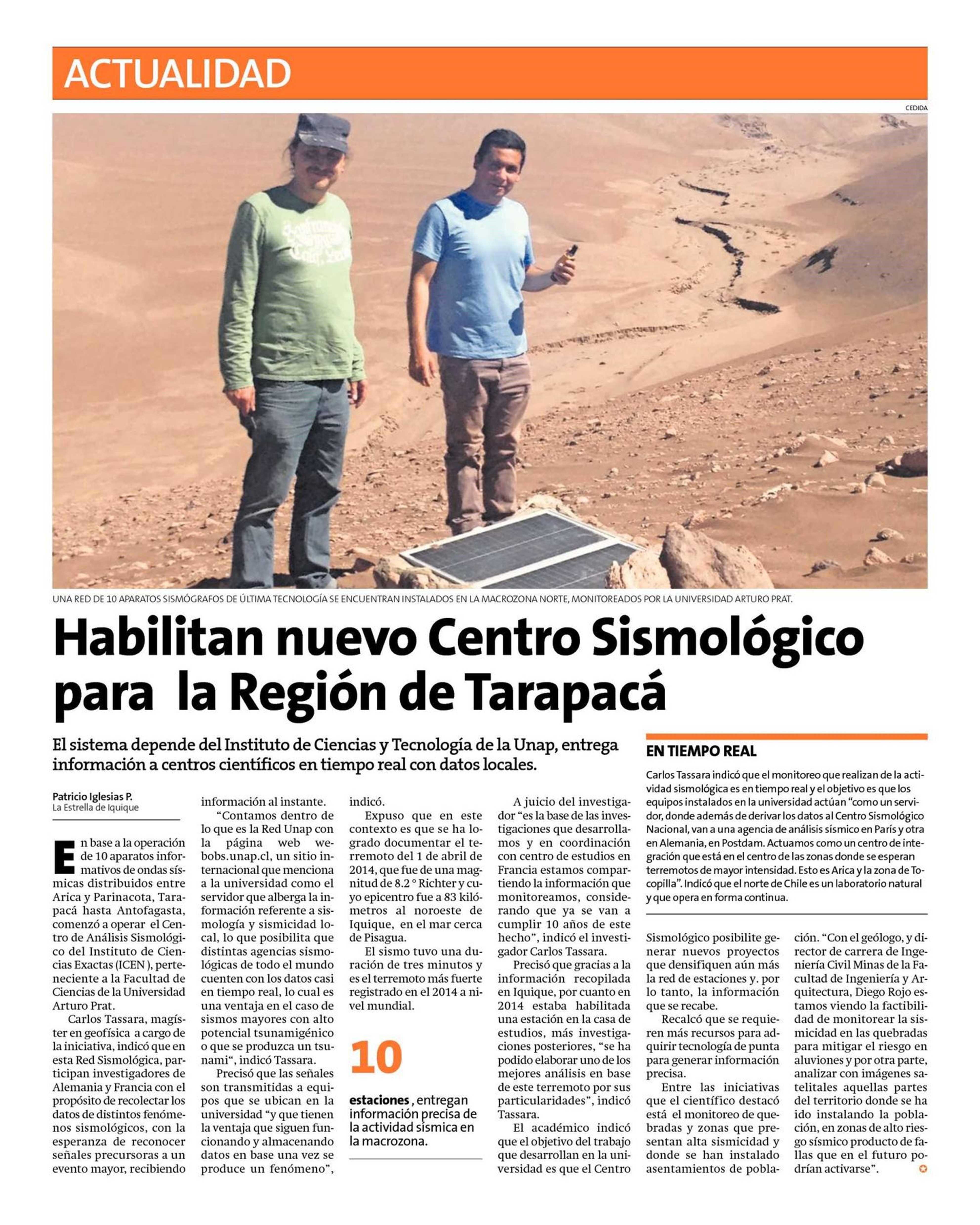 Habilitan nuevo Centro Sismológico para la Región de Tarapacá 15-03-2023 La Estrella de Iquique |