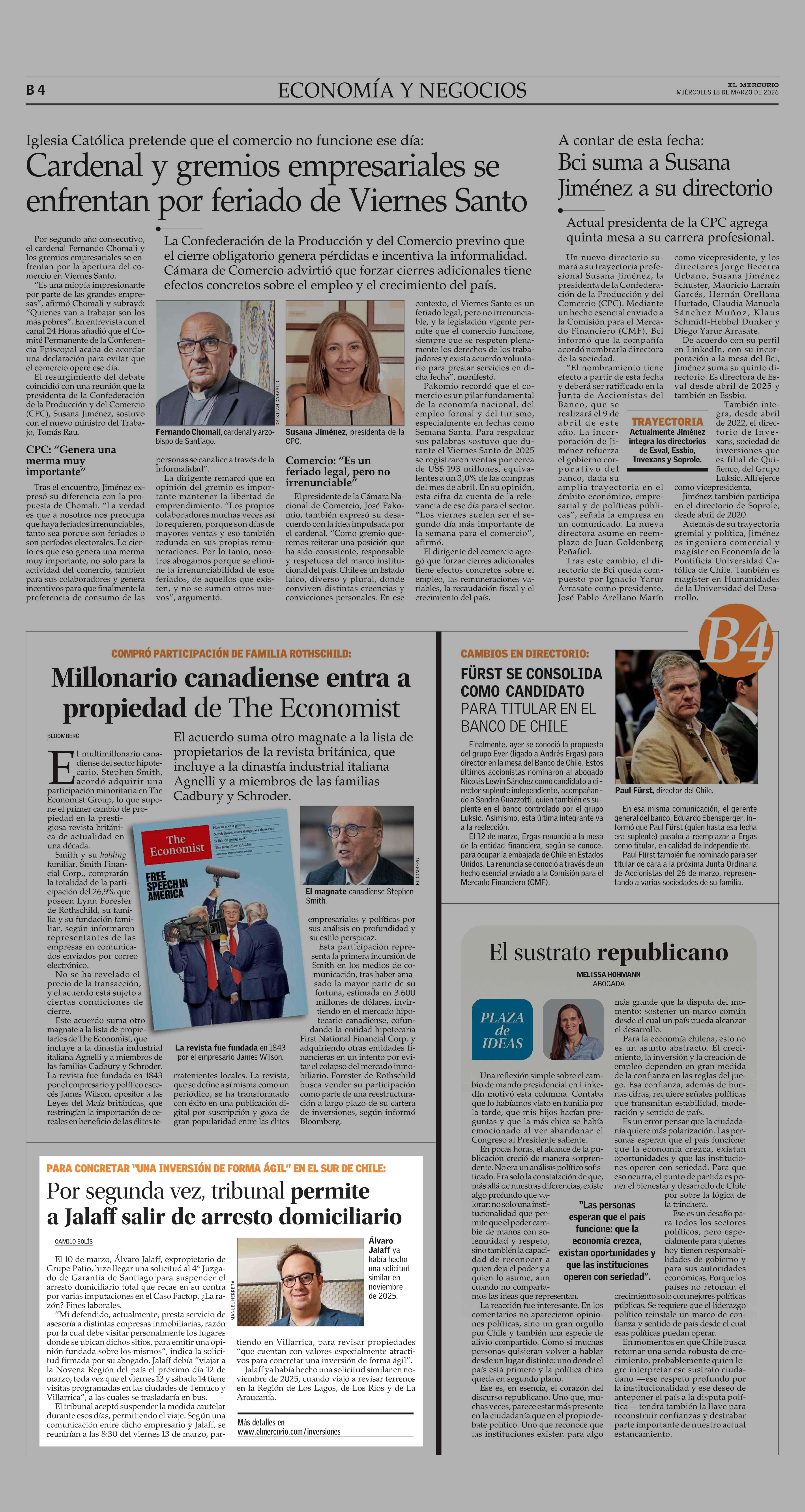 Por segunda vez, tribunal permite a Jalaff salir de arresto domiciliario 18-03-2026 El Mercurio |