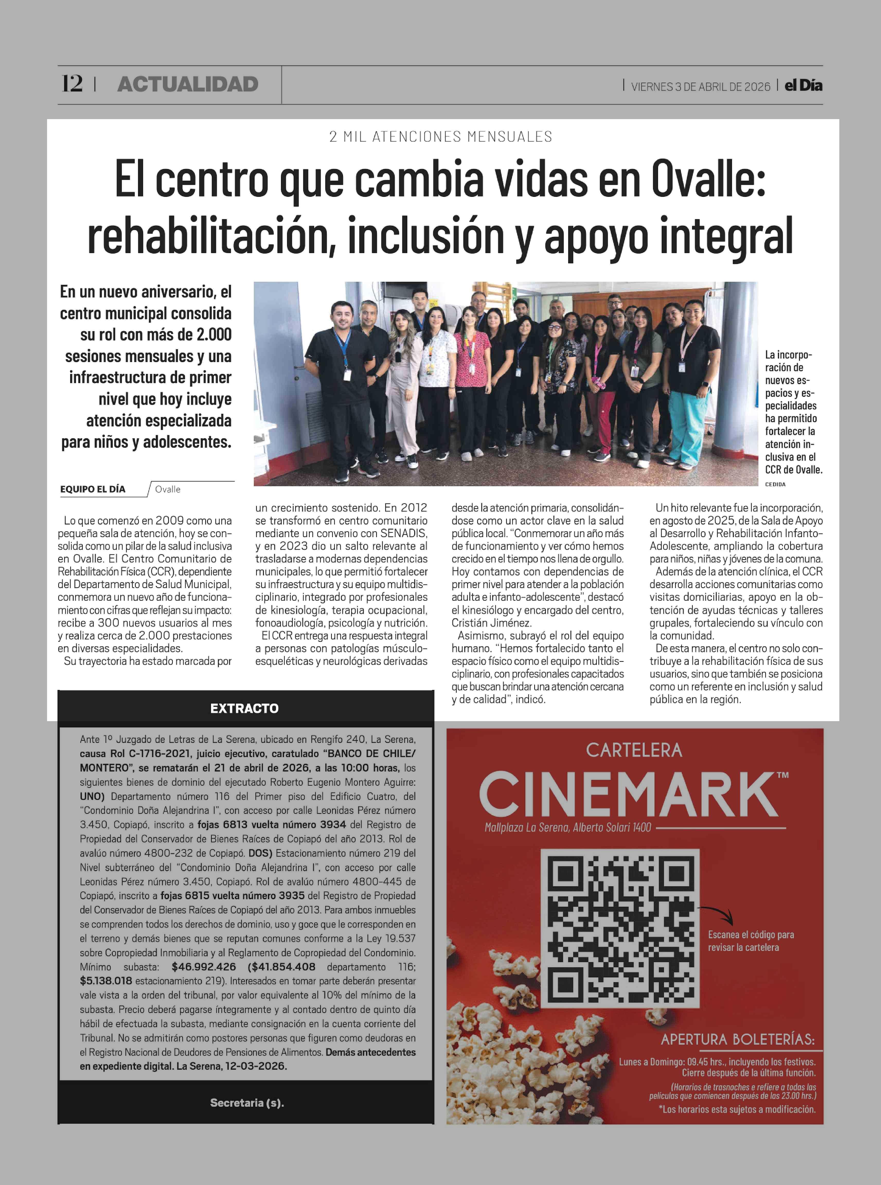 Fecha: 03-04-2026 Sector: Noticia general Región: Región de Coquimbo