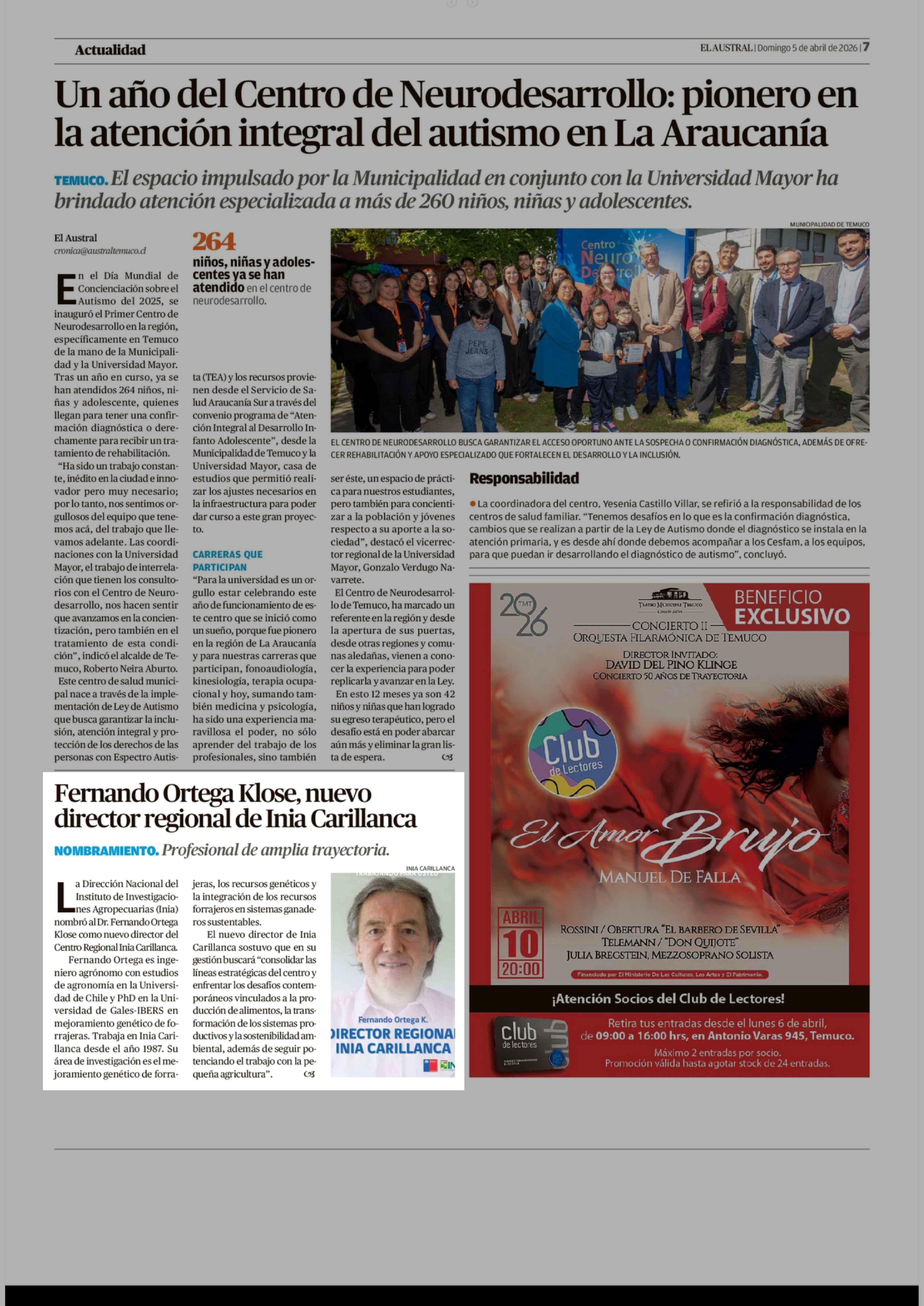 Fuente: El Austral de la Araucanía (El Austral de la Araucanía) Página(s): 7