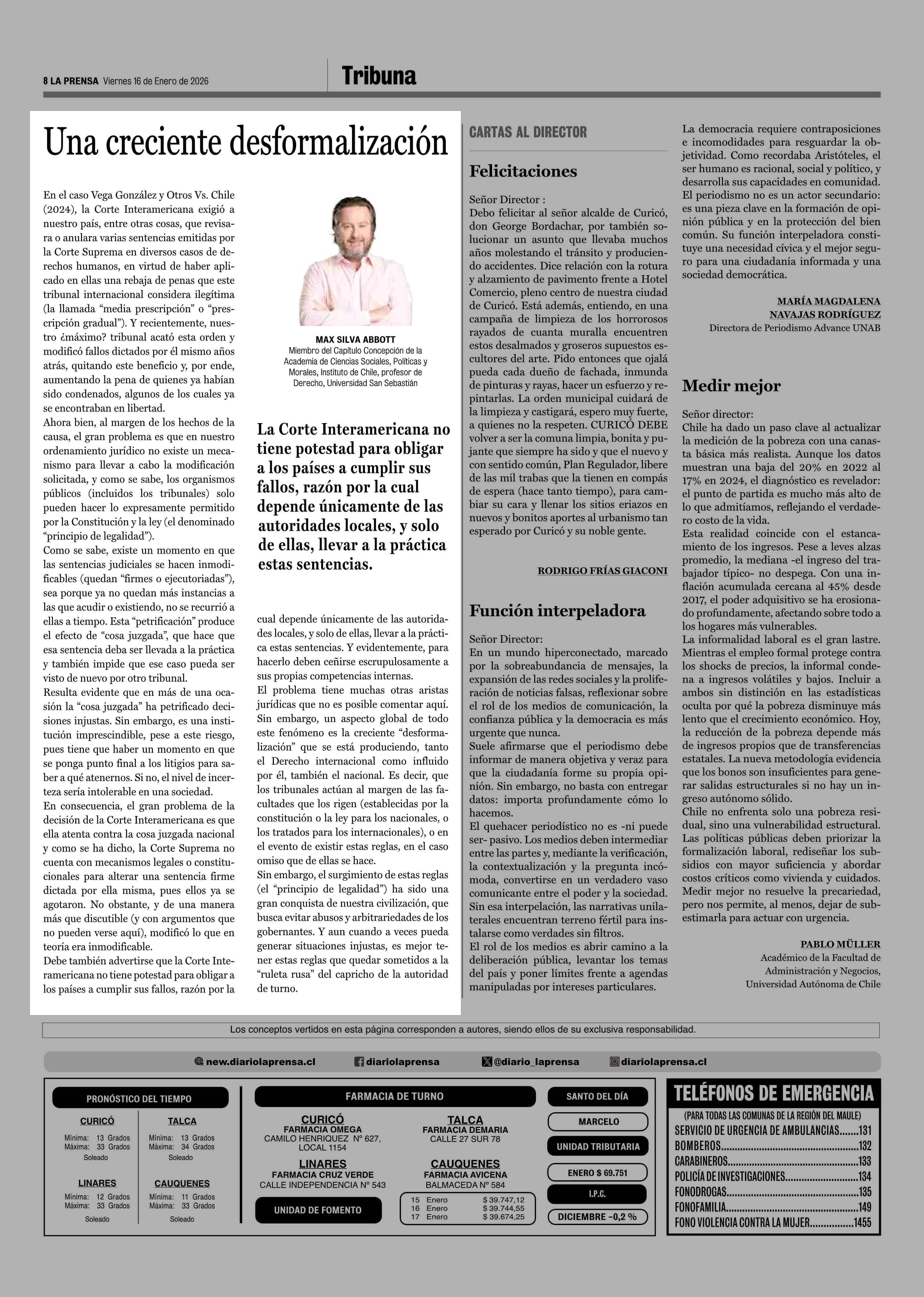 Columnas de Opinión: Una creciente desformalización 16-01-2026 La Prensa de Curicó |