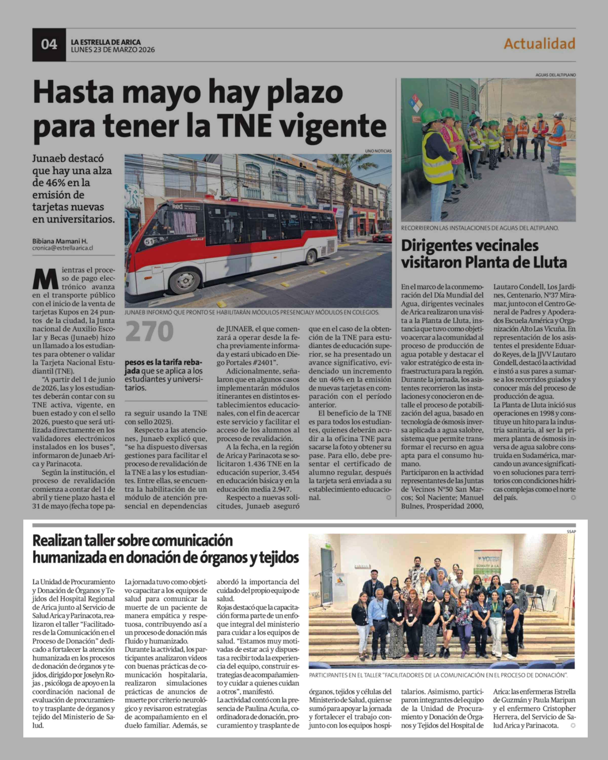 | Fecha: | 23-03-2026 | Sector: | Noticia general | Región: | Región de Arica y Parinacota |