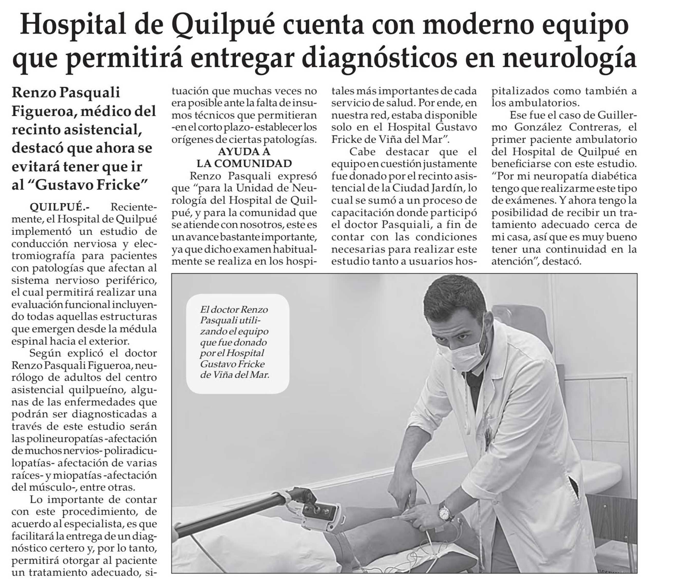 | Título: | Hospital de Quilpué cuenta con moderno equipo que permitirá entregar diagnósticos en neurología |