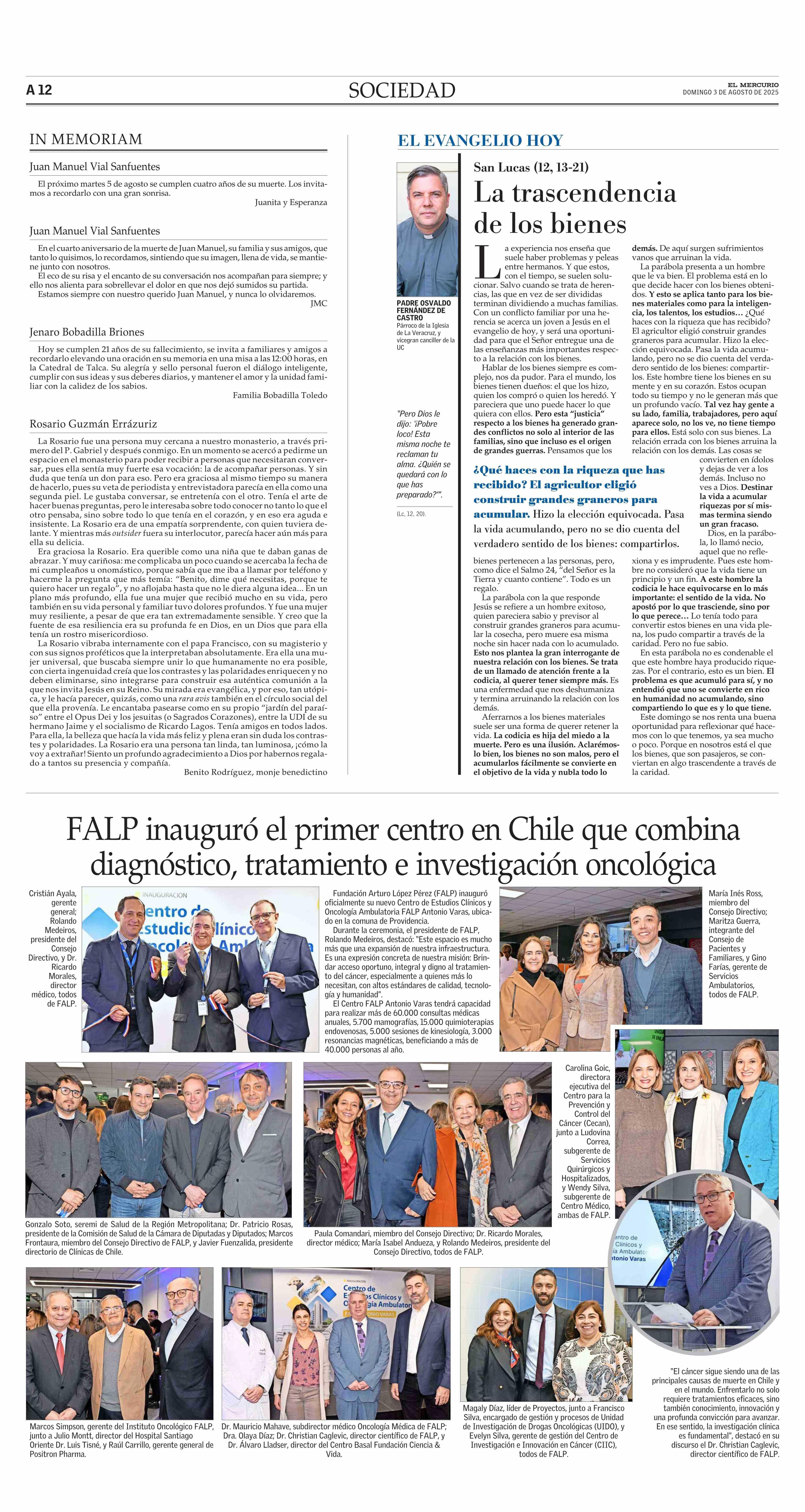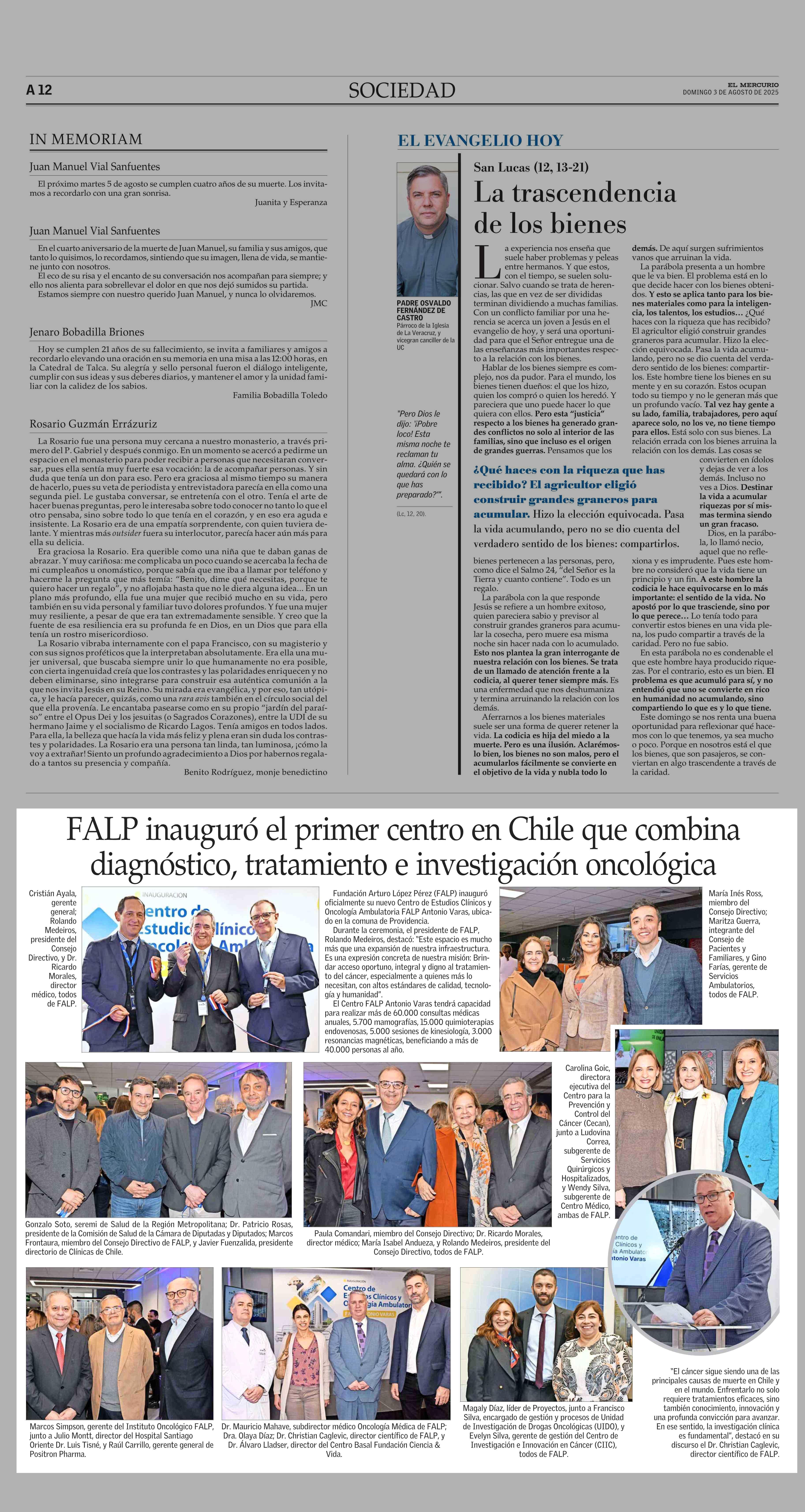 FALP inauguró el primer centro en Chile que combina diagnóstico, tratamiento e investigación oncológica 03-08-2025 El Mercurio |
