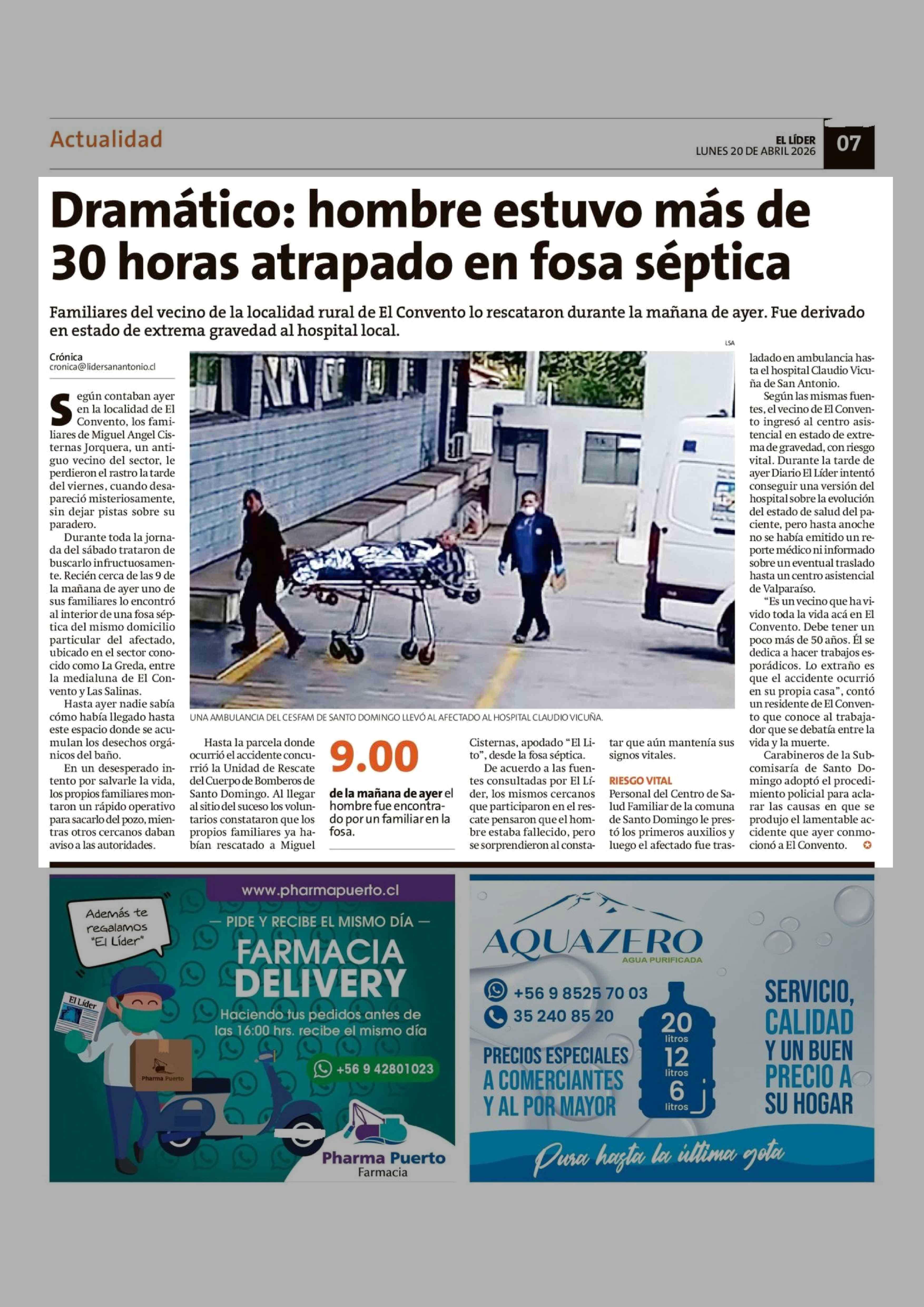 Título: Dramático: hombre estuvo más de 30 horas atrapado en fosa séptica