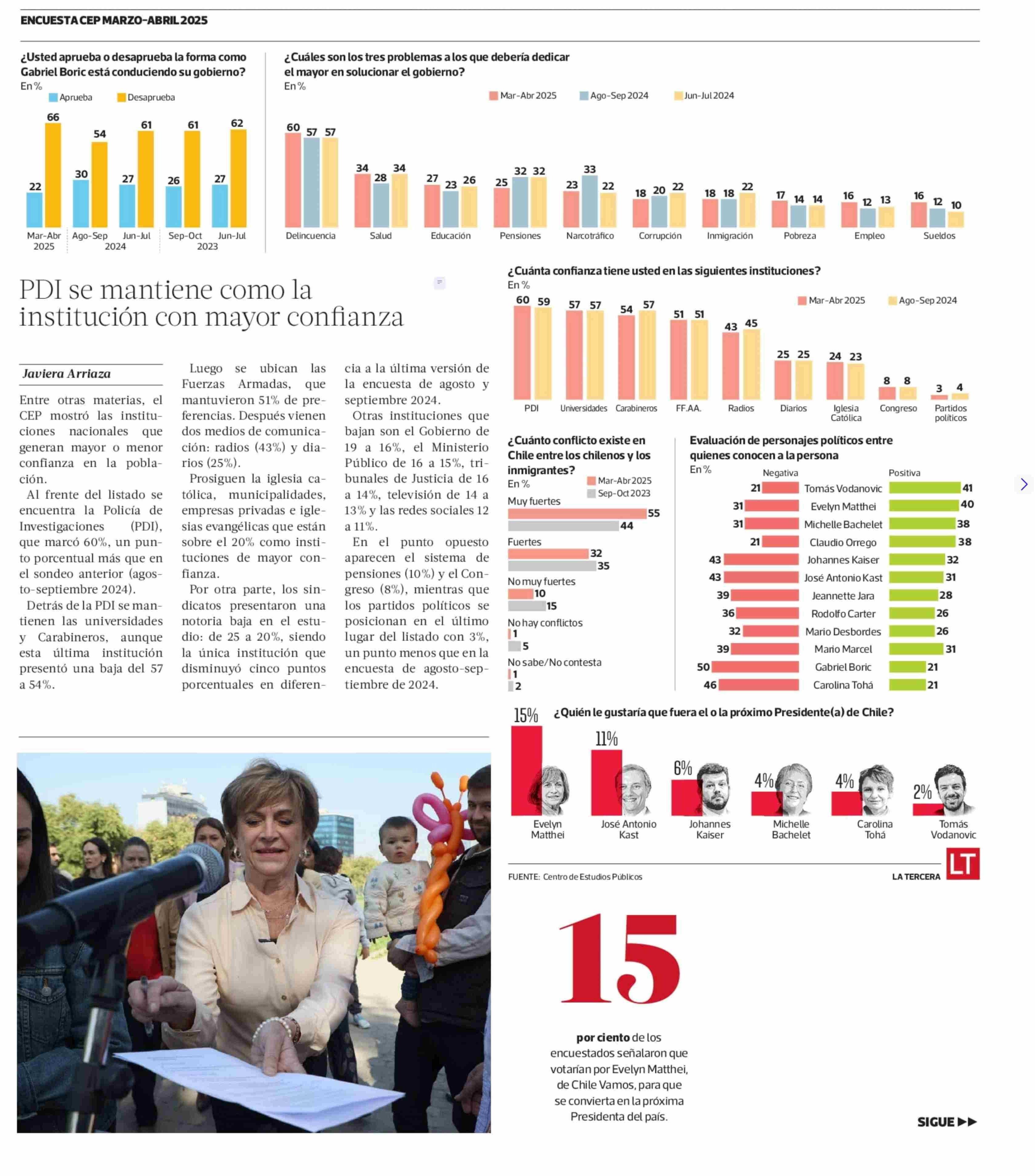 Encuesta CEP: 22% aprueba la gestión de Boric y 66% la rechaza 08-05-2025 La Tercera |