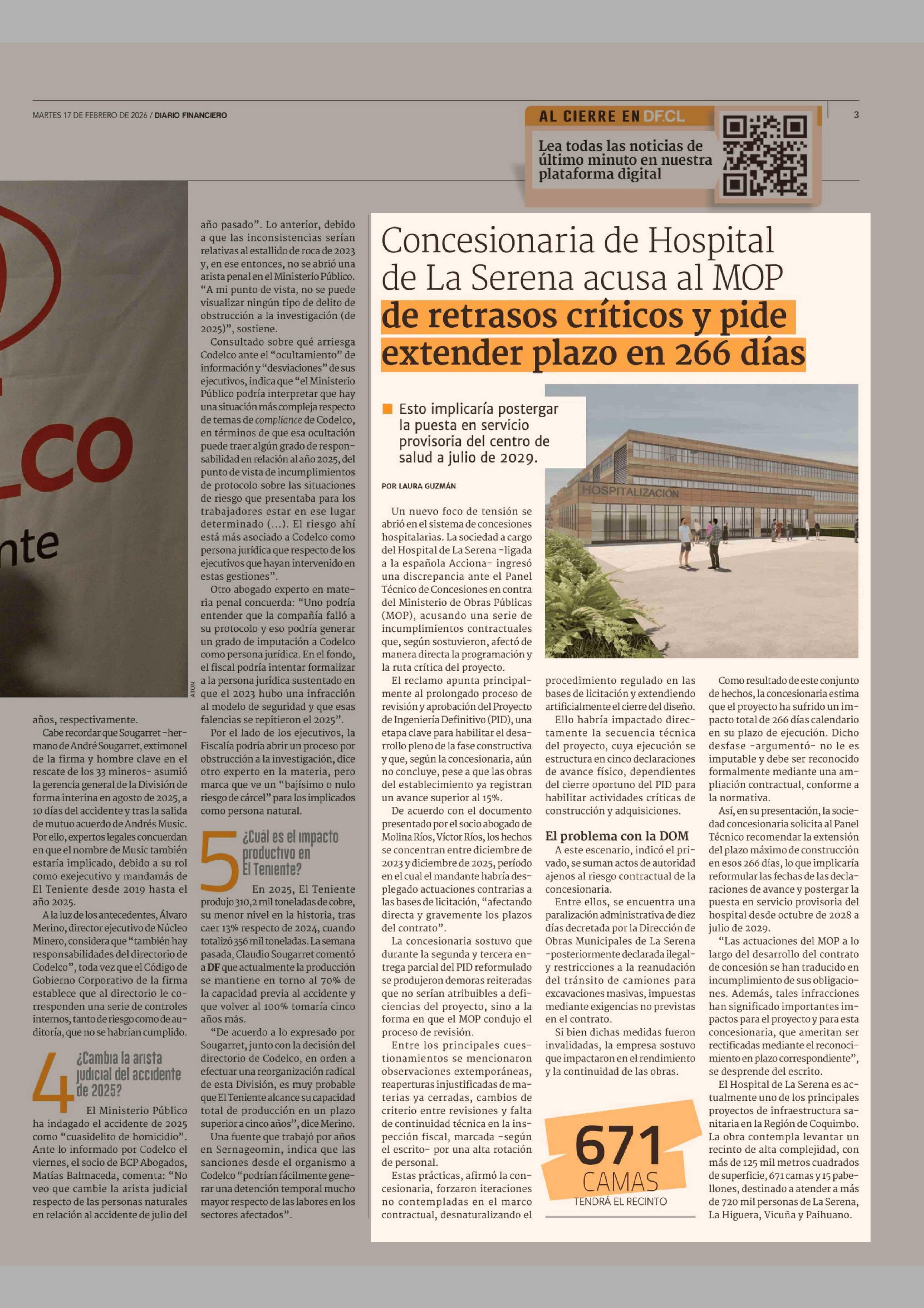 Título: Concesionaria de Hospital de La Serena acusa al MOP de retrasos críticos y pide extender plazo en 266 días