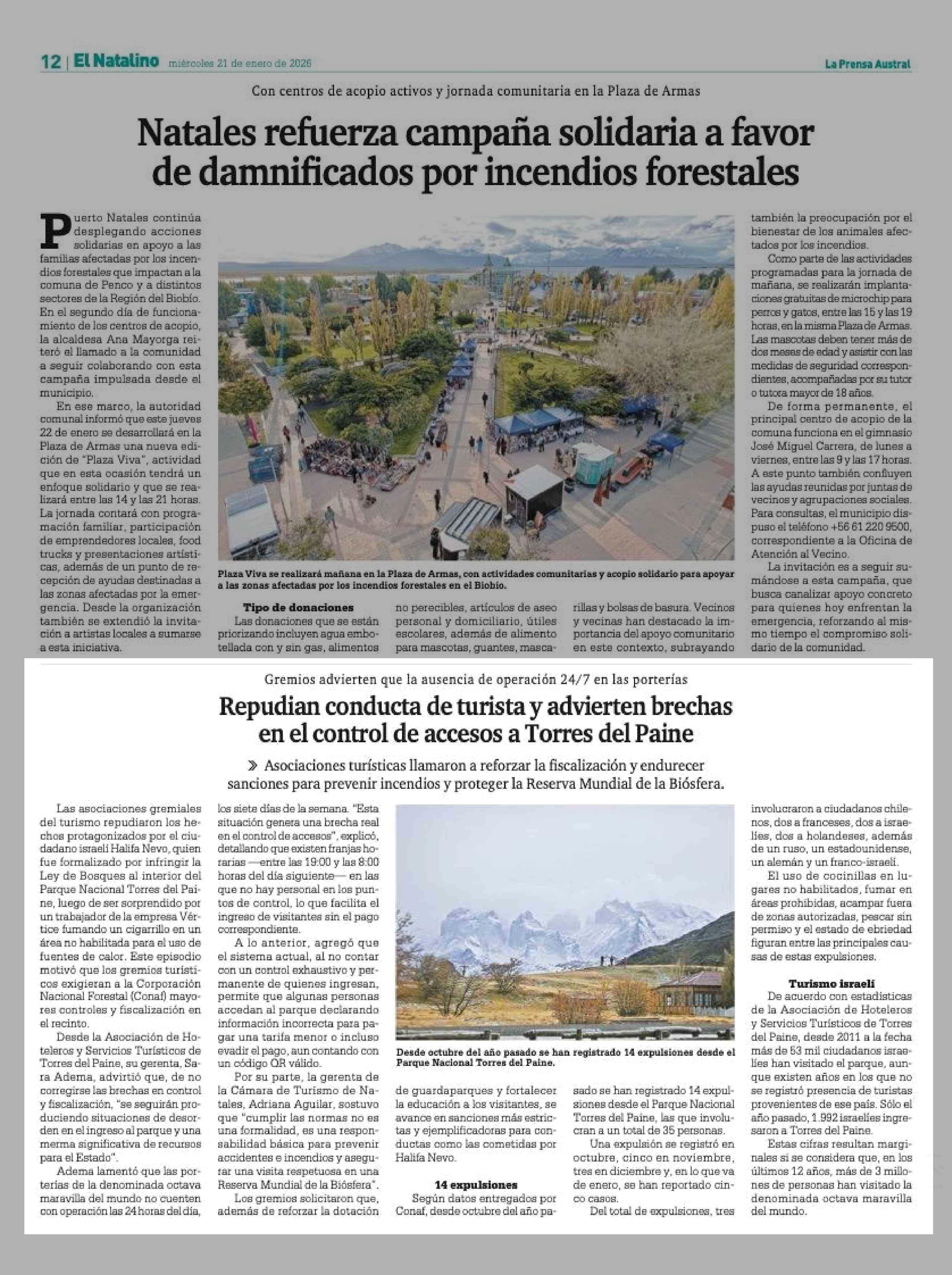 Repudian conducta de turista y advierten brechas en el control de accesos a Torres del Paine 21-01-2026 La Prensa Austral |