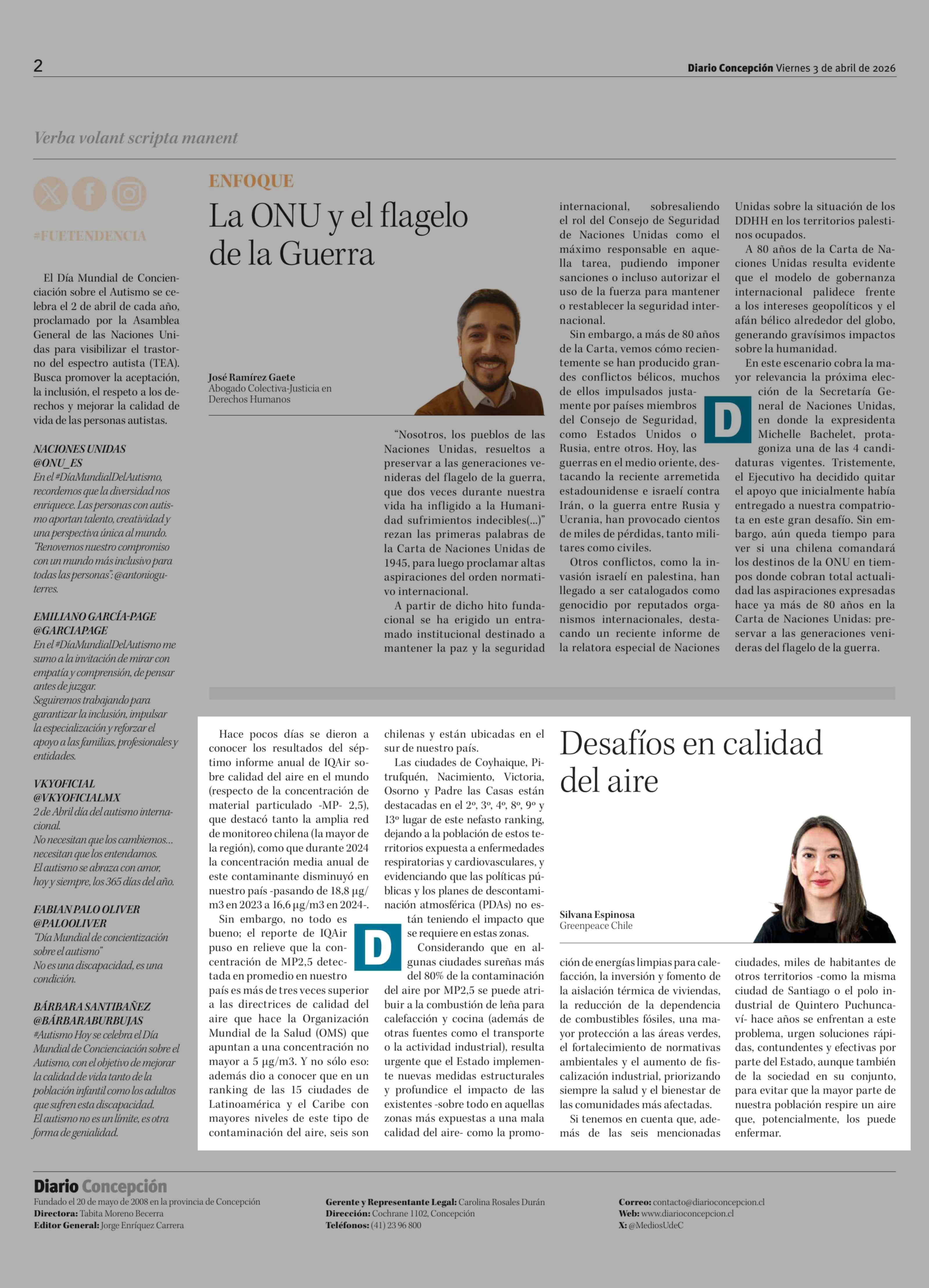 Columnas de Opinión: Desafíos en calidad del aire 03-04-2026 Diario Concepción |