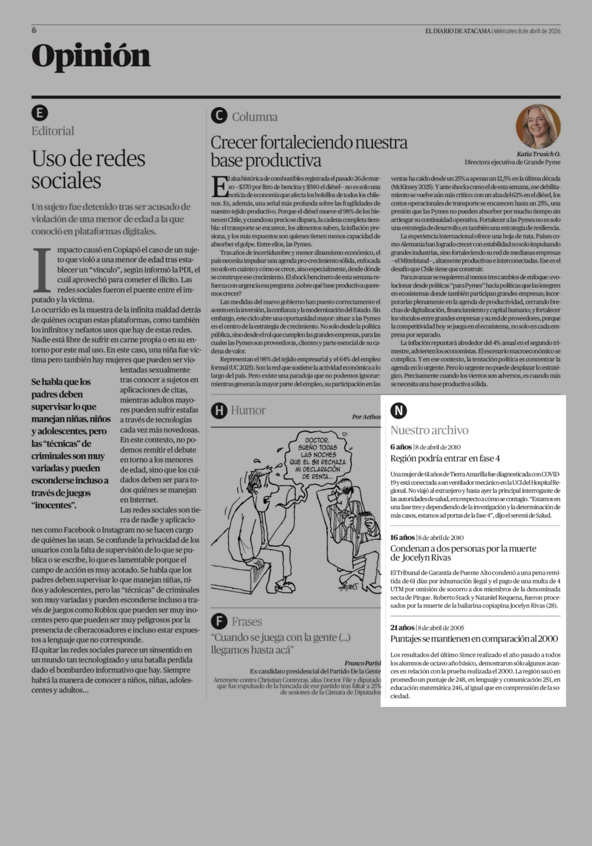 Fuente: El Diario de Atacama (El Diario de Atacama) Página(s): 6
