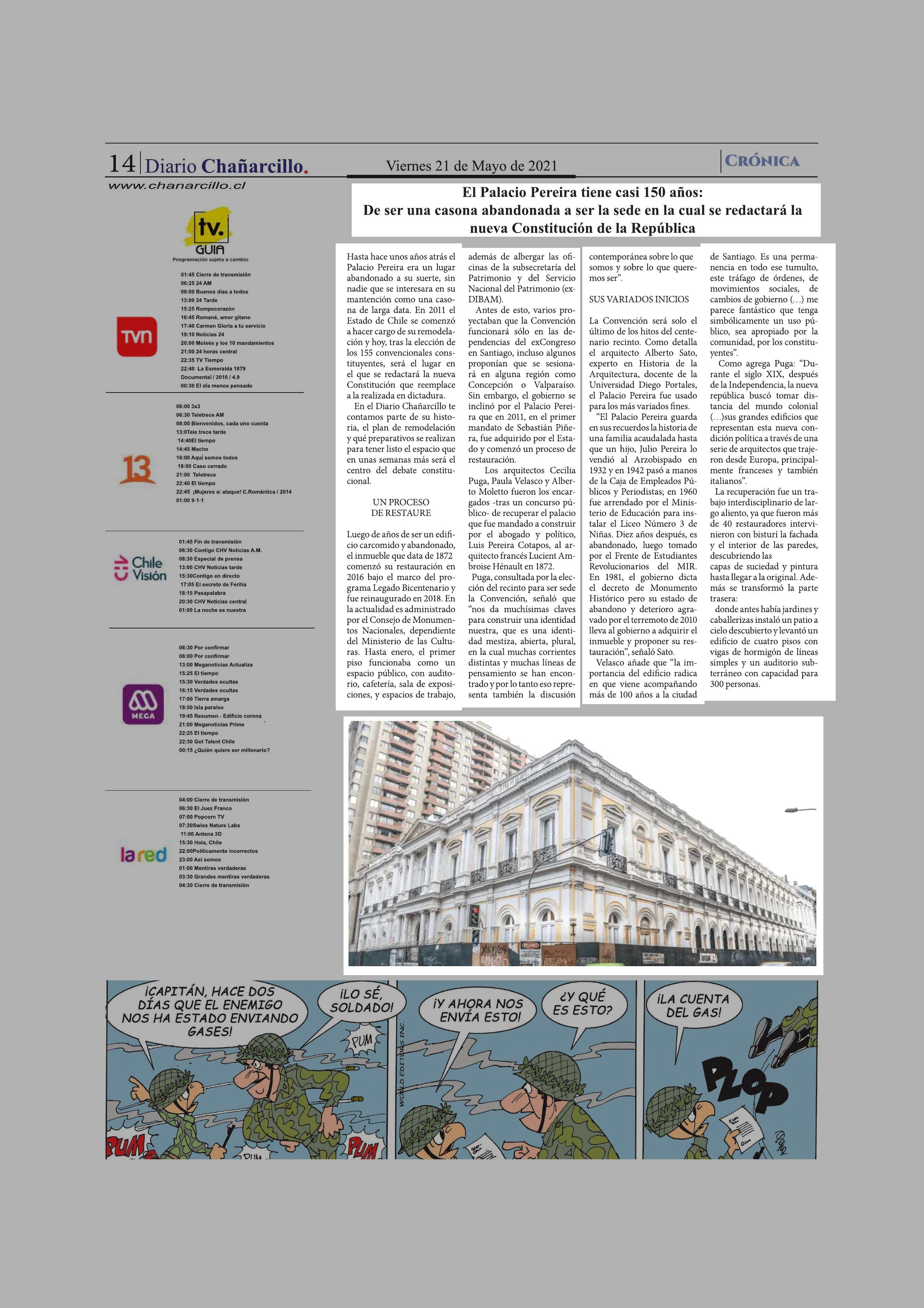 El Palacio Pereira tiene casi 150 años: De ser una casona abandonada a ser la sede en la cual se redactará la nueva Constitución de la República 21-05-2021 Diario Chañarcillo |