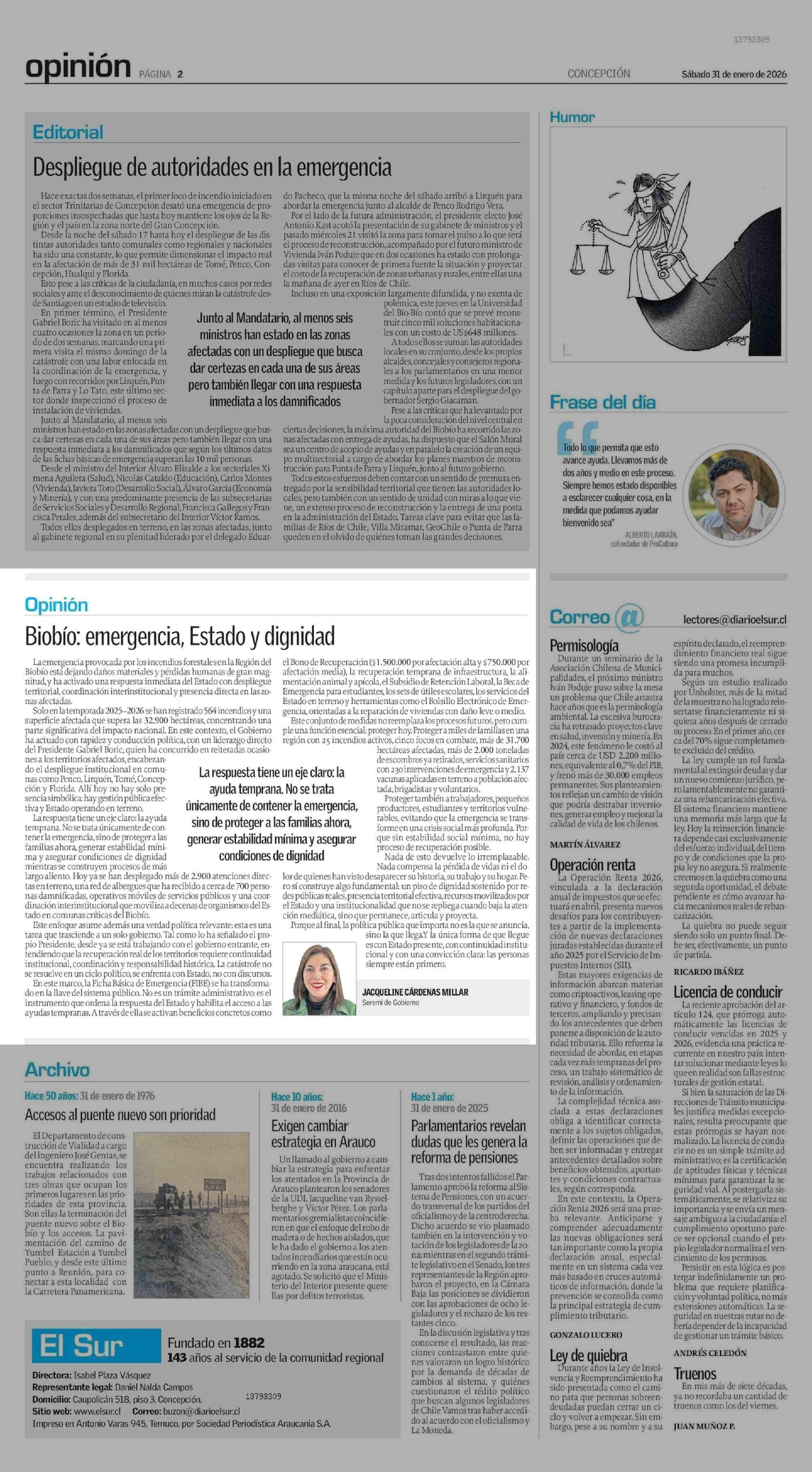 Fecha: 31-01-2026 Sector: Columnas de Opinión Región: Región del Bío-Bío