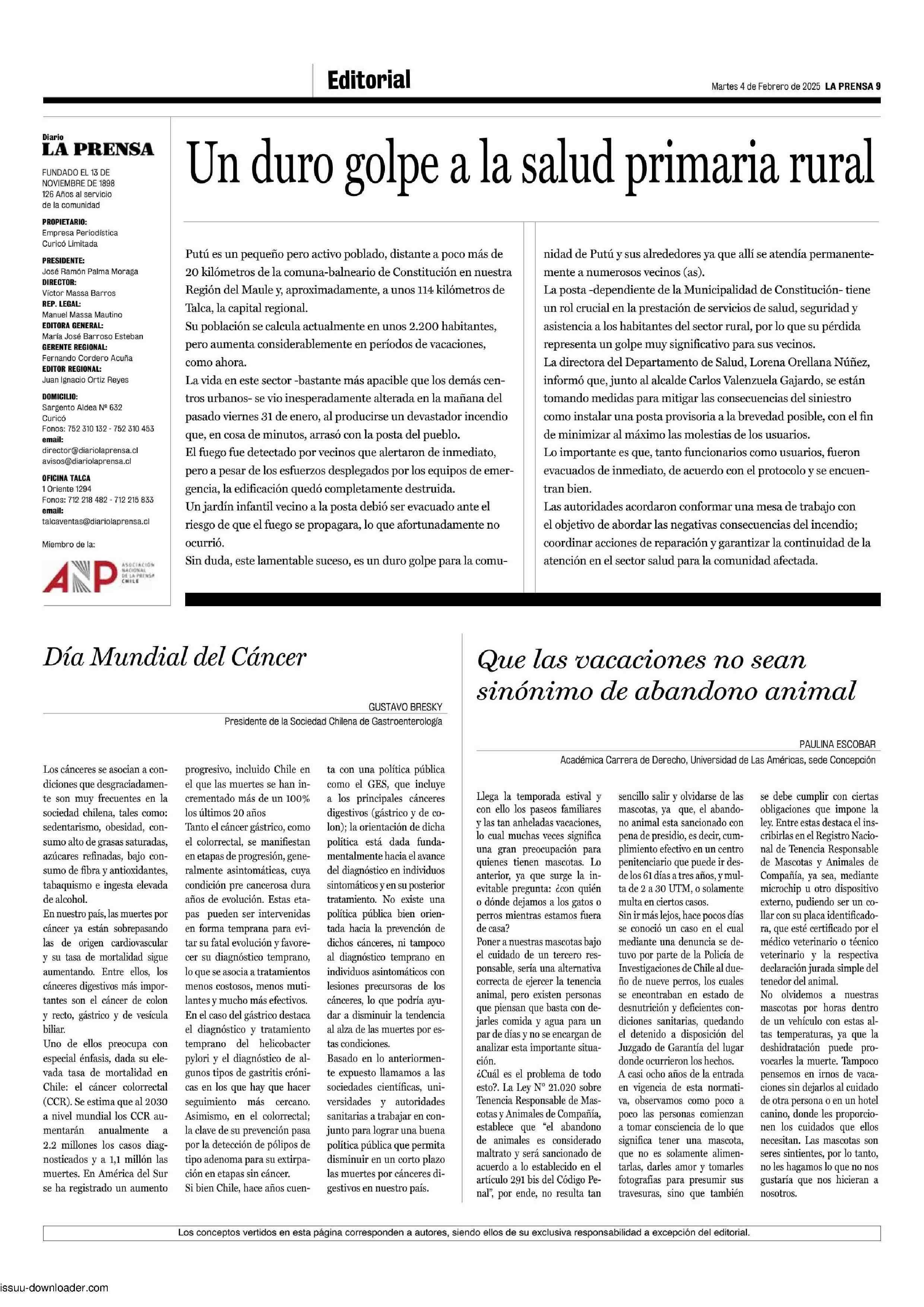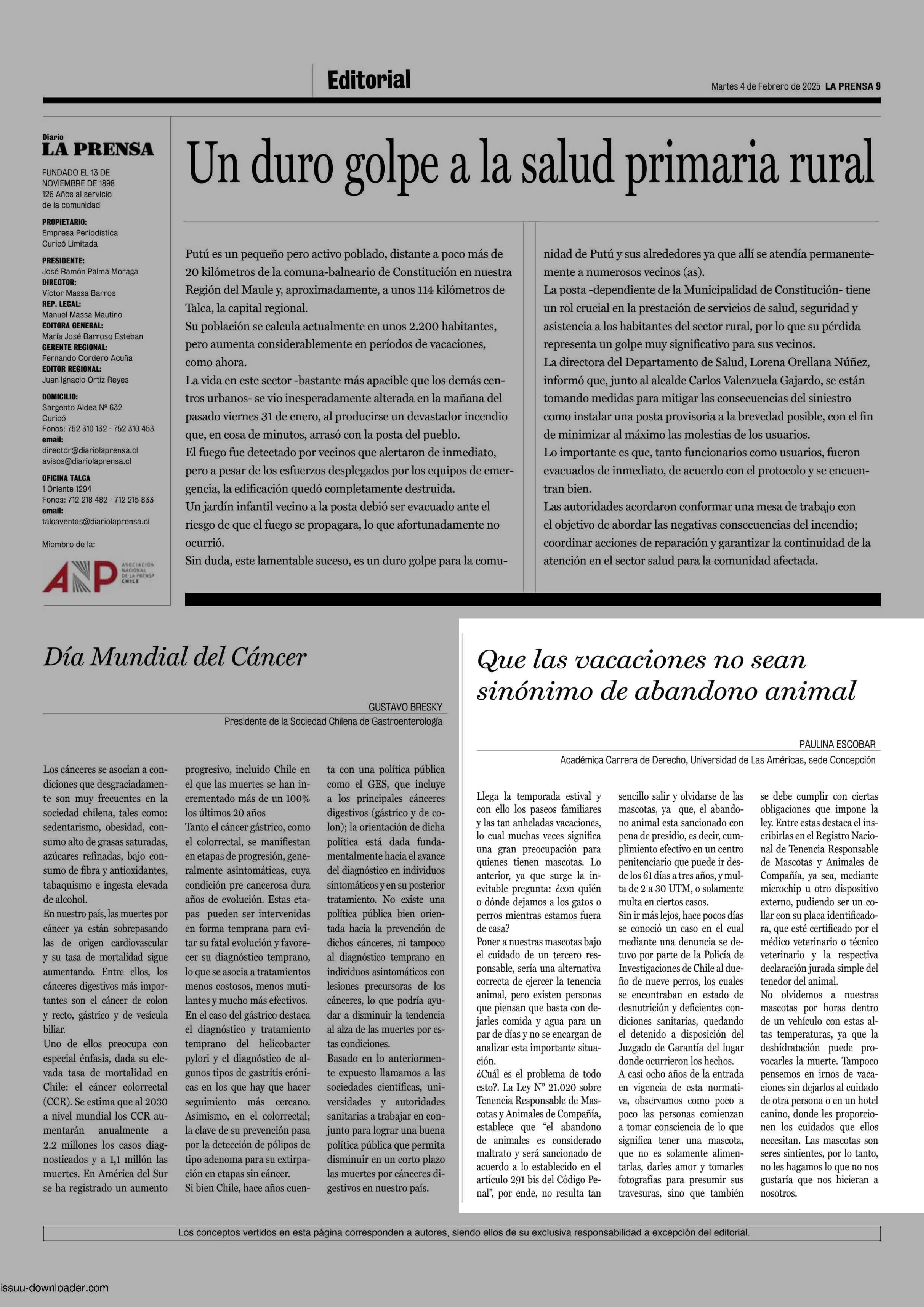 CARTAS: Que las vacaciones no sean sinónimo de abandono animal 04-02-2025 La Prensa de Curicó |