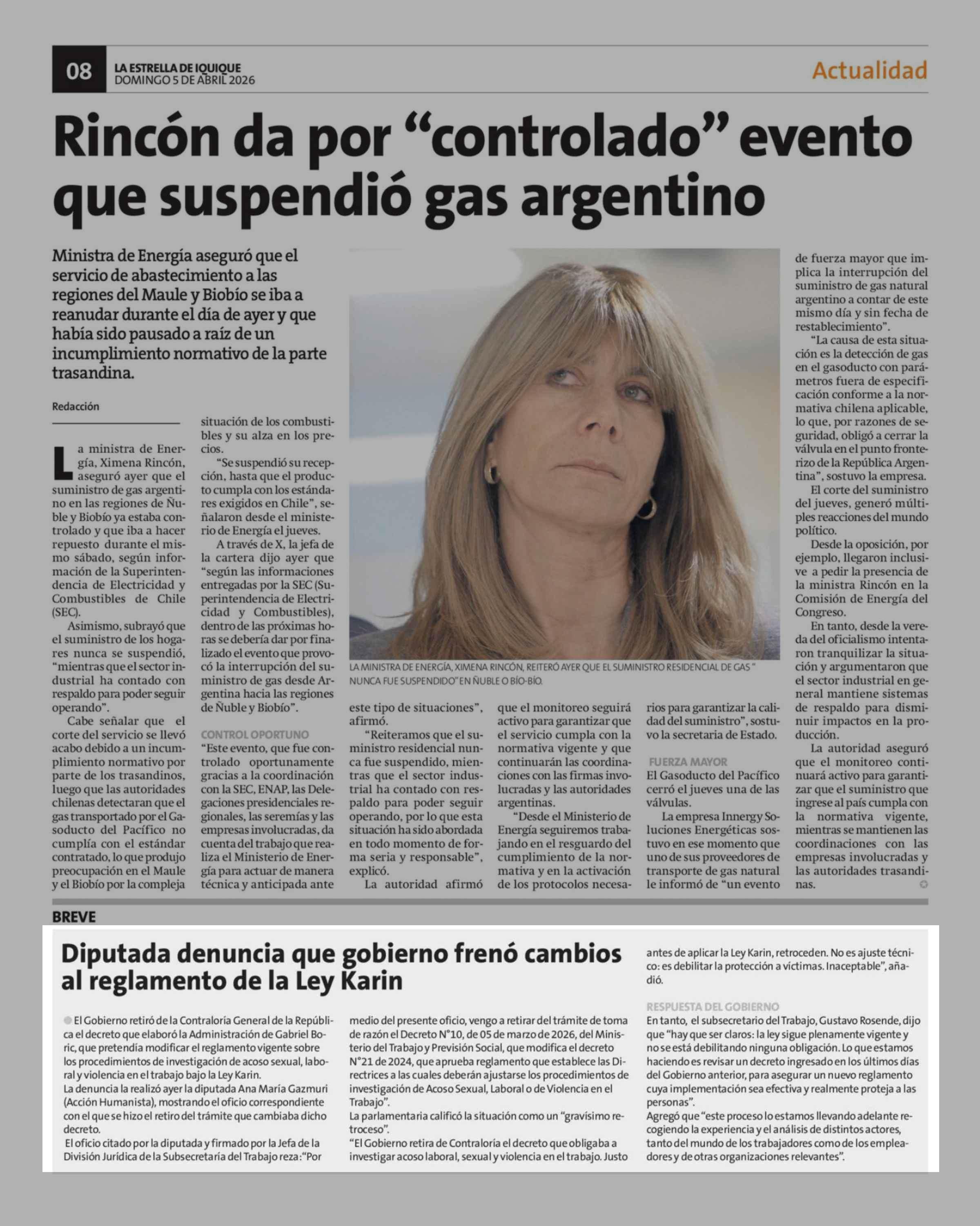 Diputada denuncia que gobierno frenó cambios al reglamento de la Ley Karin 05-04-2026 La Estrella de Iquique |
