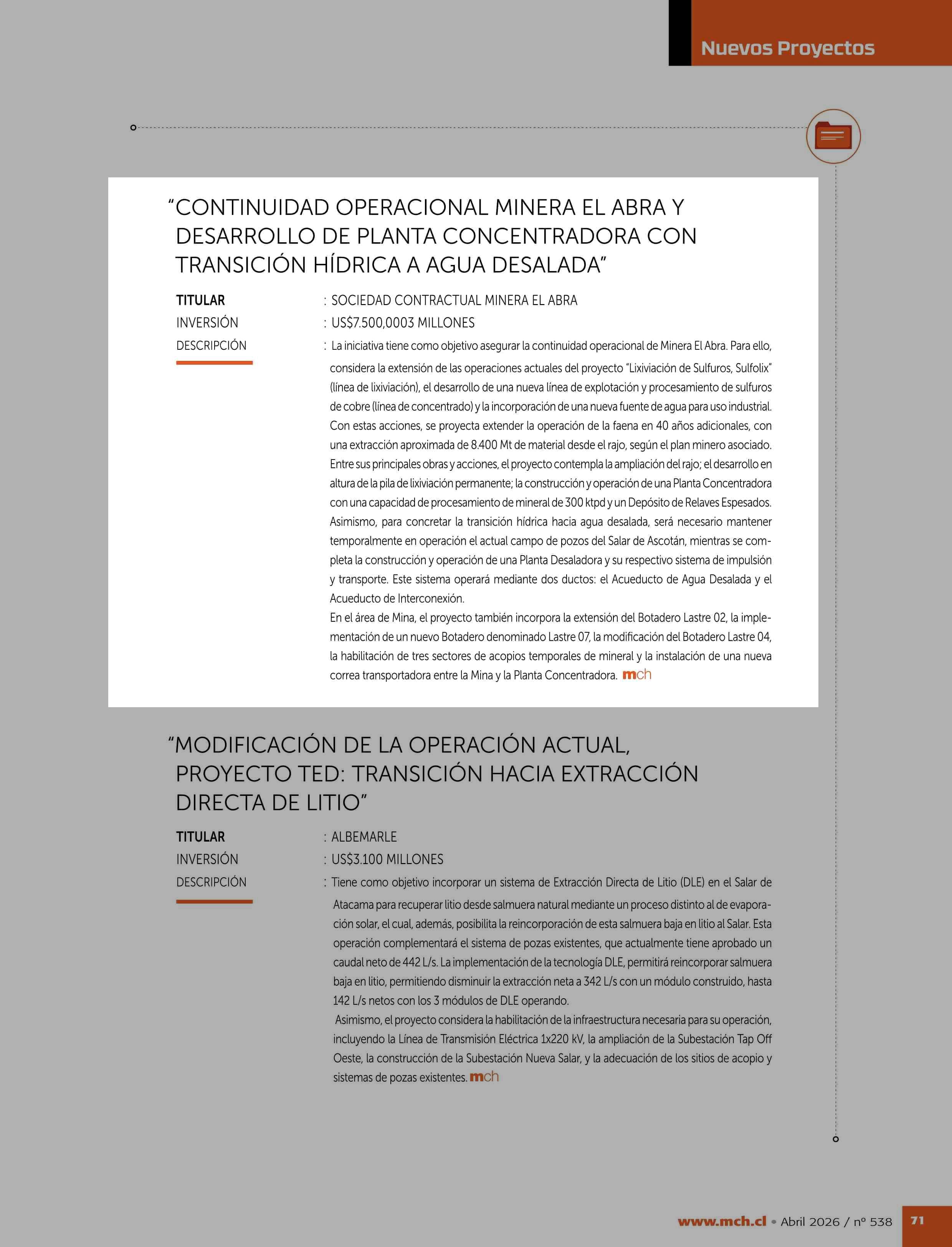 Fuente: Revista Minería Chilena (Revista Minería Chilena) Página(s): 73