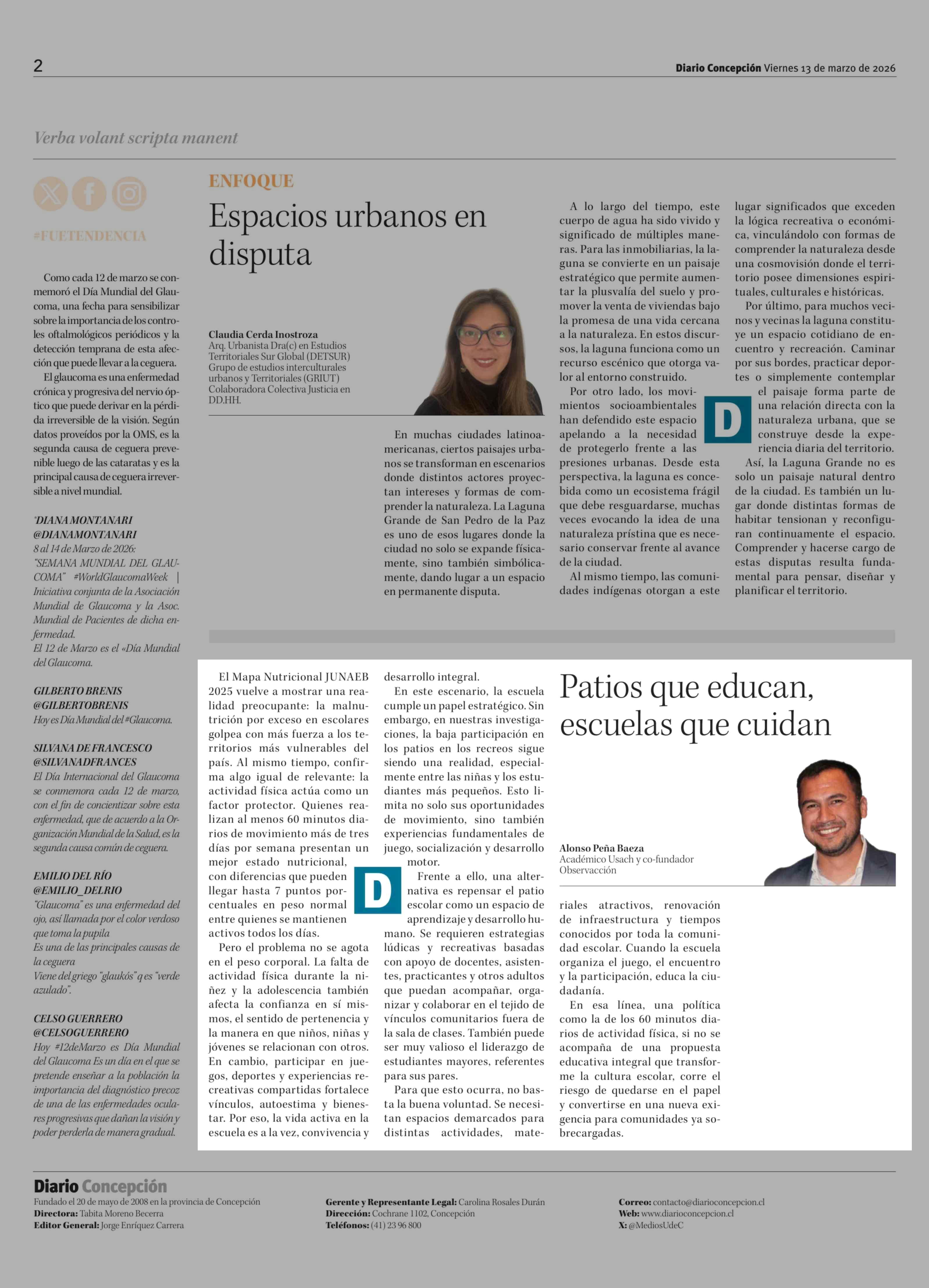 Columnas de Opinión: Patios que educan, escuelas que cuidan 13-03-2026 Diario Concepción |