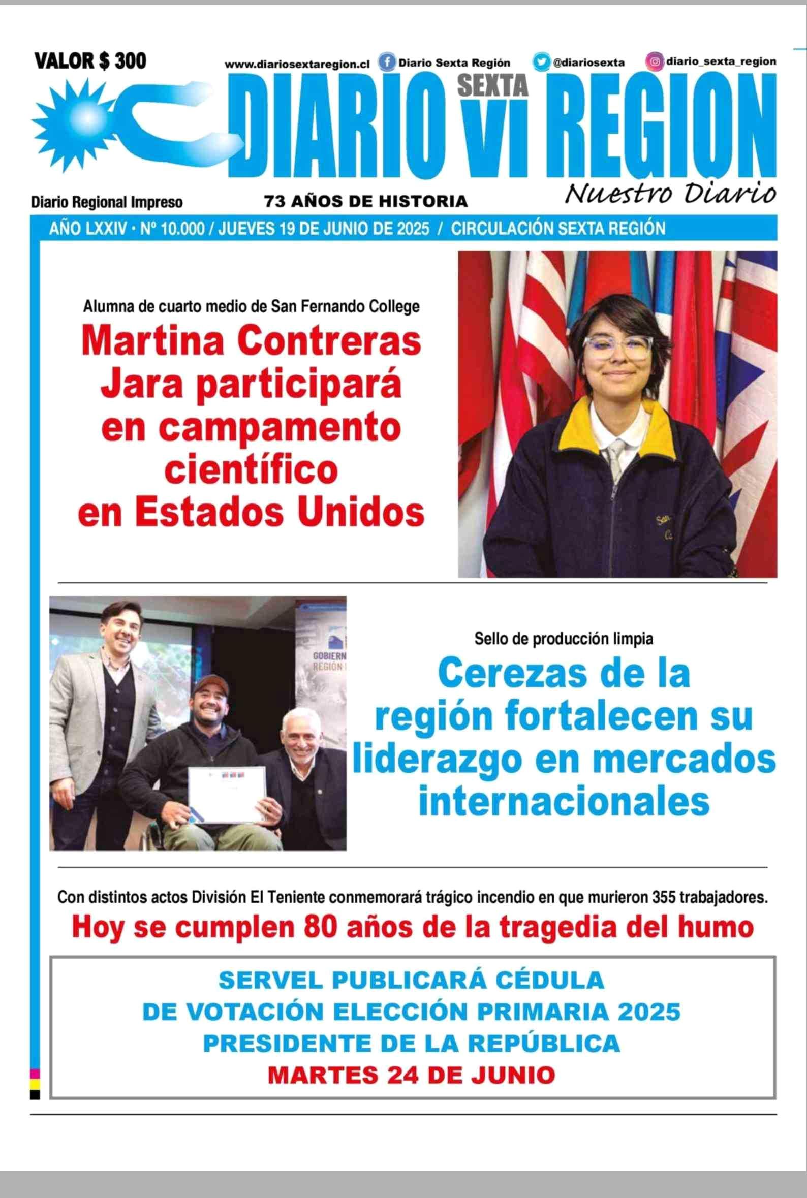 | Fecha: | 19-06-2025 | Sector: | Portada | Región: | Región del Libertador General Bernardo O'Higgins |