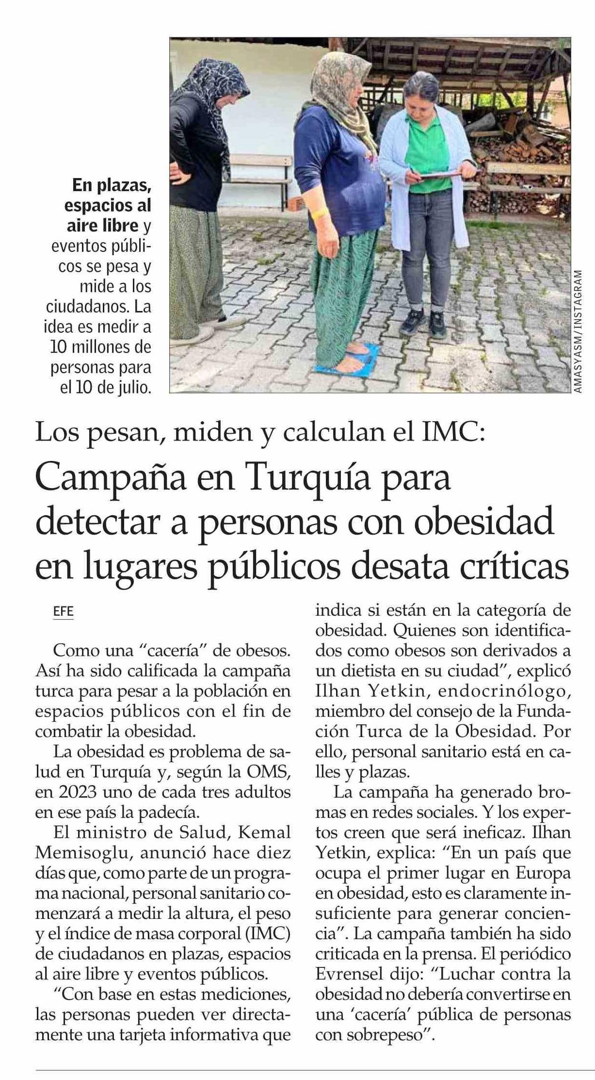 Campaña en Turquía para detectar a personas con obesidad en lugares públicos desata críticas 23-05-2025 El Mercurio |