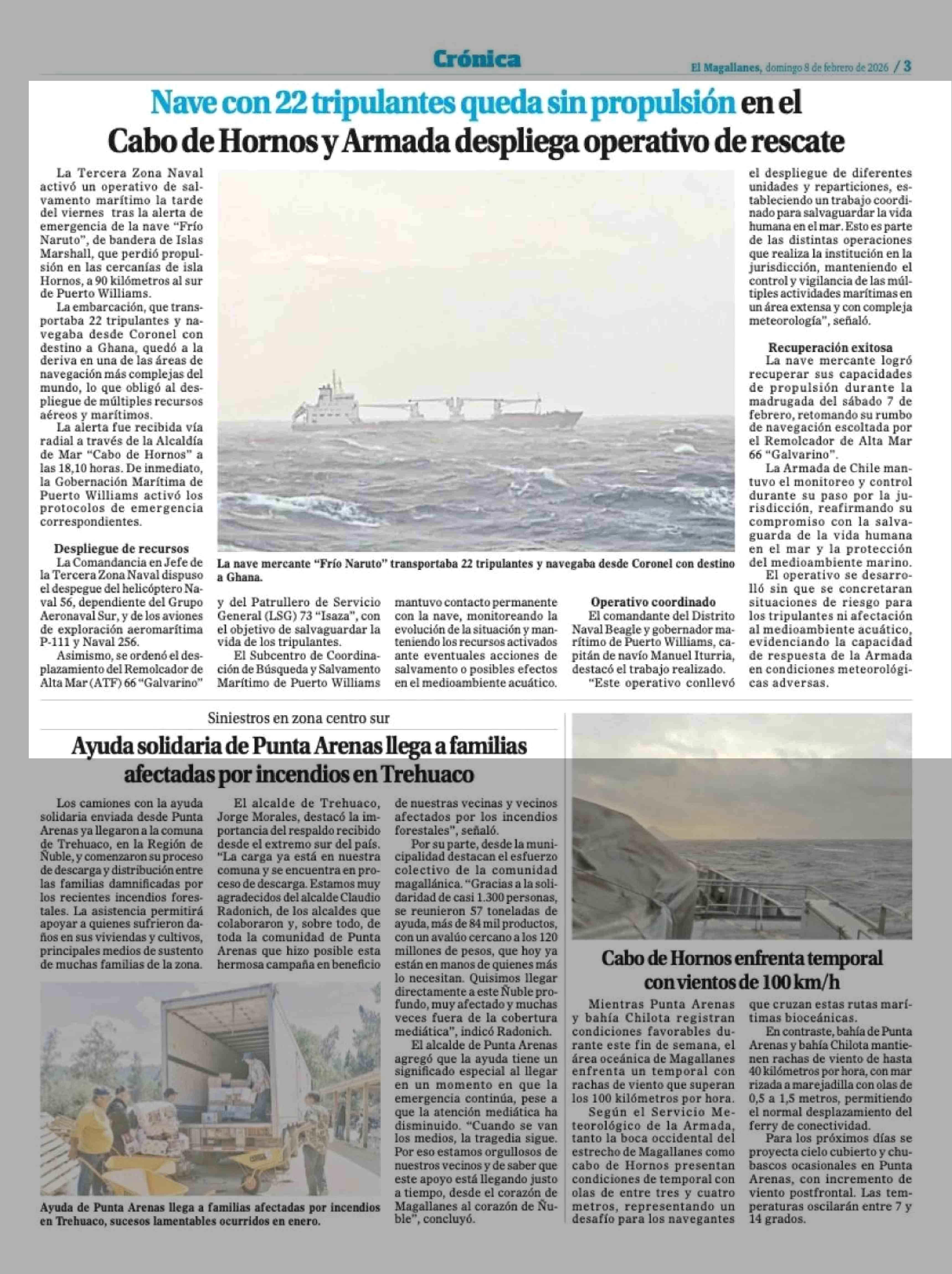 Fecha: 08-02-2026 Sector: Noticia general Región: Región de Magallanes y de la Antártica Chilena