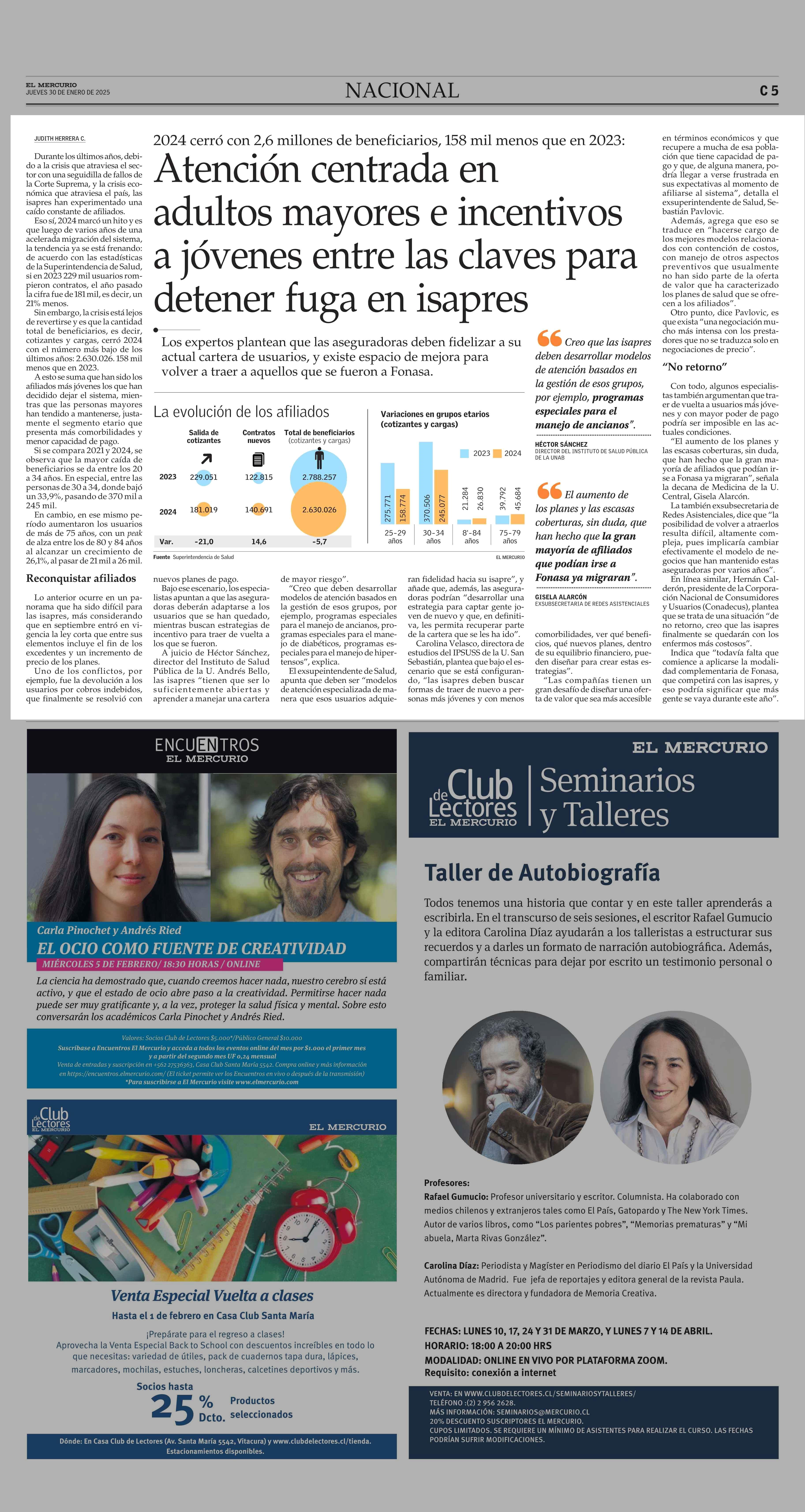 Atención centrada en adultos mayores e incentivos a jóvenes entre las claves para detener fuga en isapres 30-01-2025 El Mercurio |