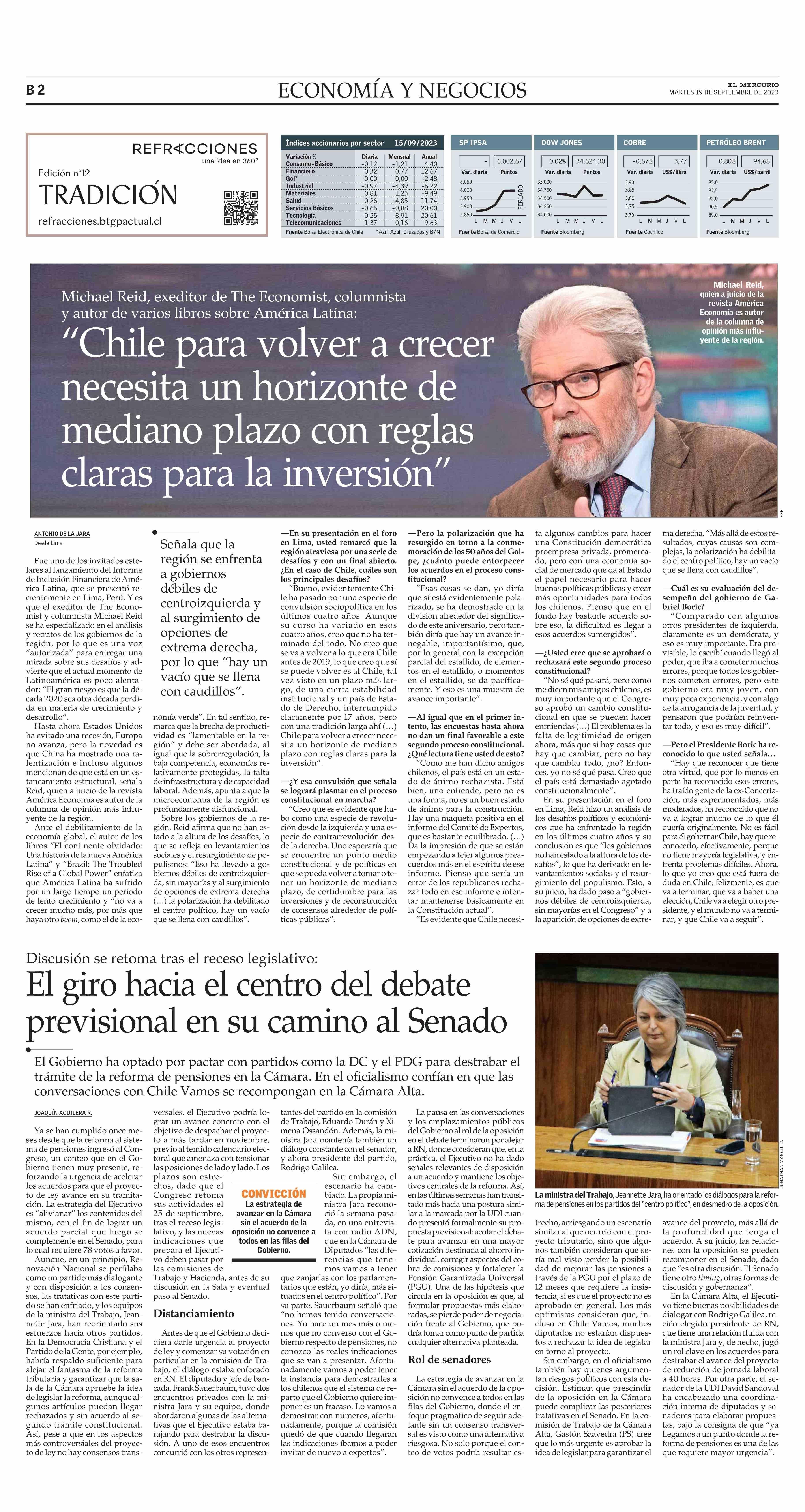 El giro hacia el centro del debate previsional en su camino al Senado 19-09-2023 El Mercurio |
