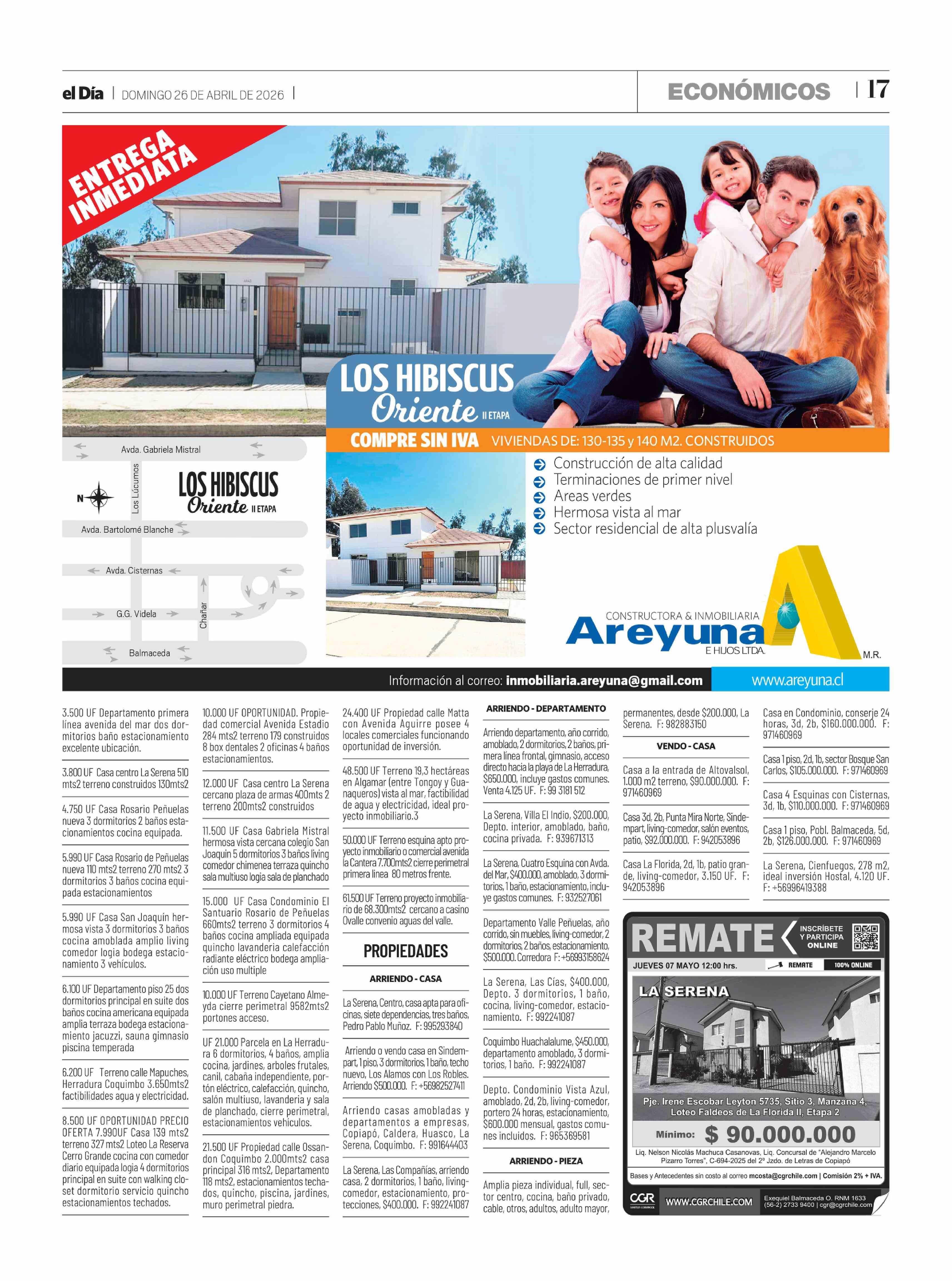 Fecha: 26-04-2026 Sector: Aviso Inmobiliario Región: Región de Coquimbo