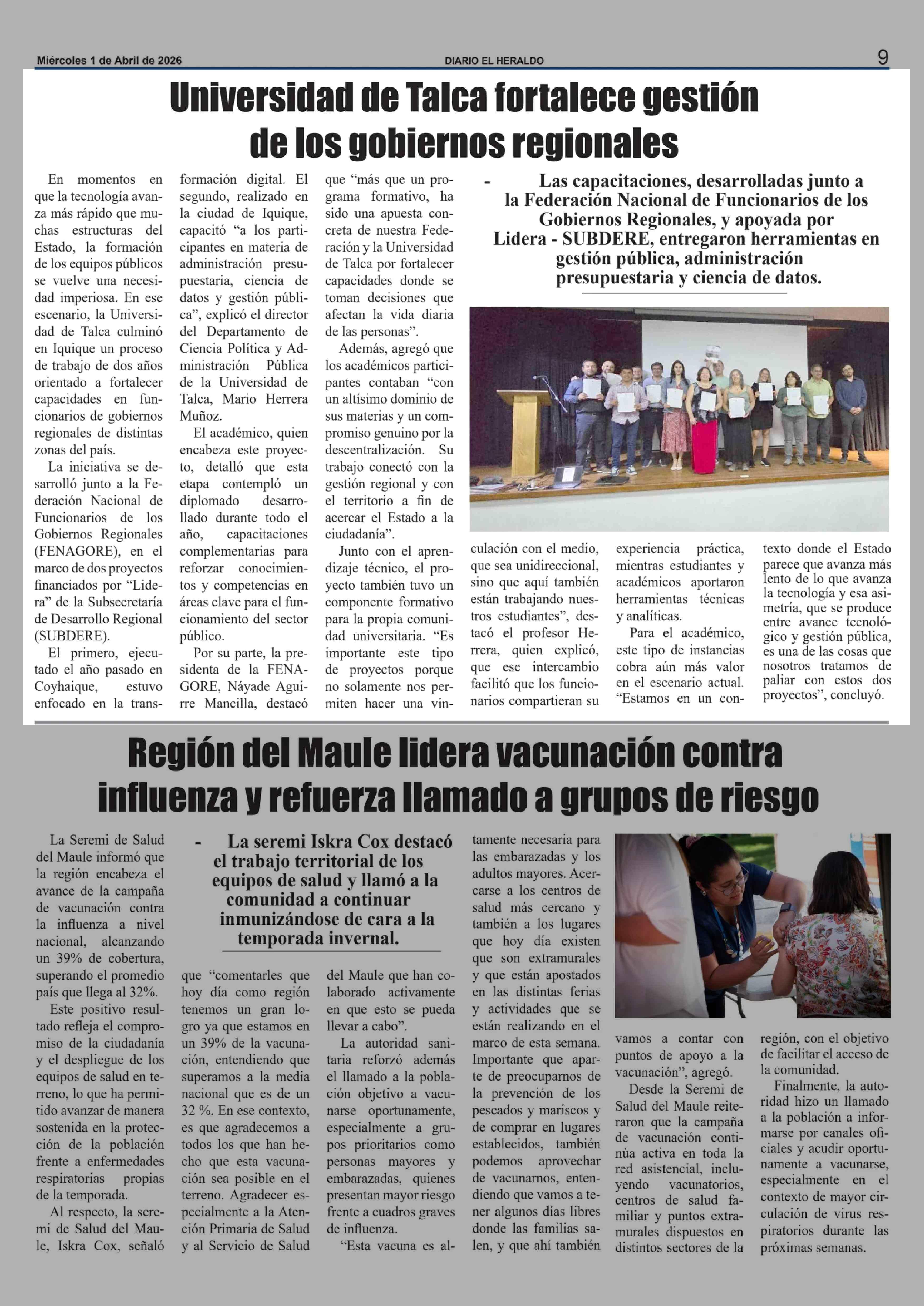 Fecha: 01-04-2026 Sector: Noticia general Región: Región del Maule