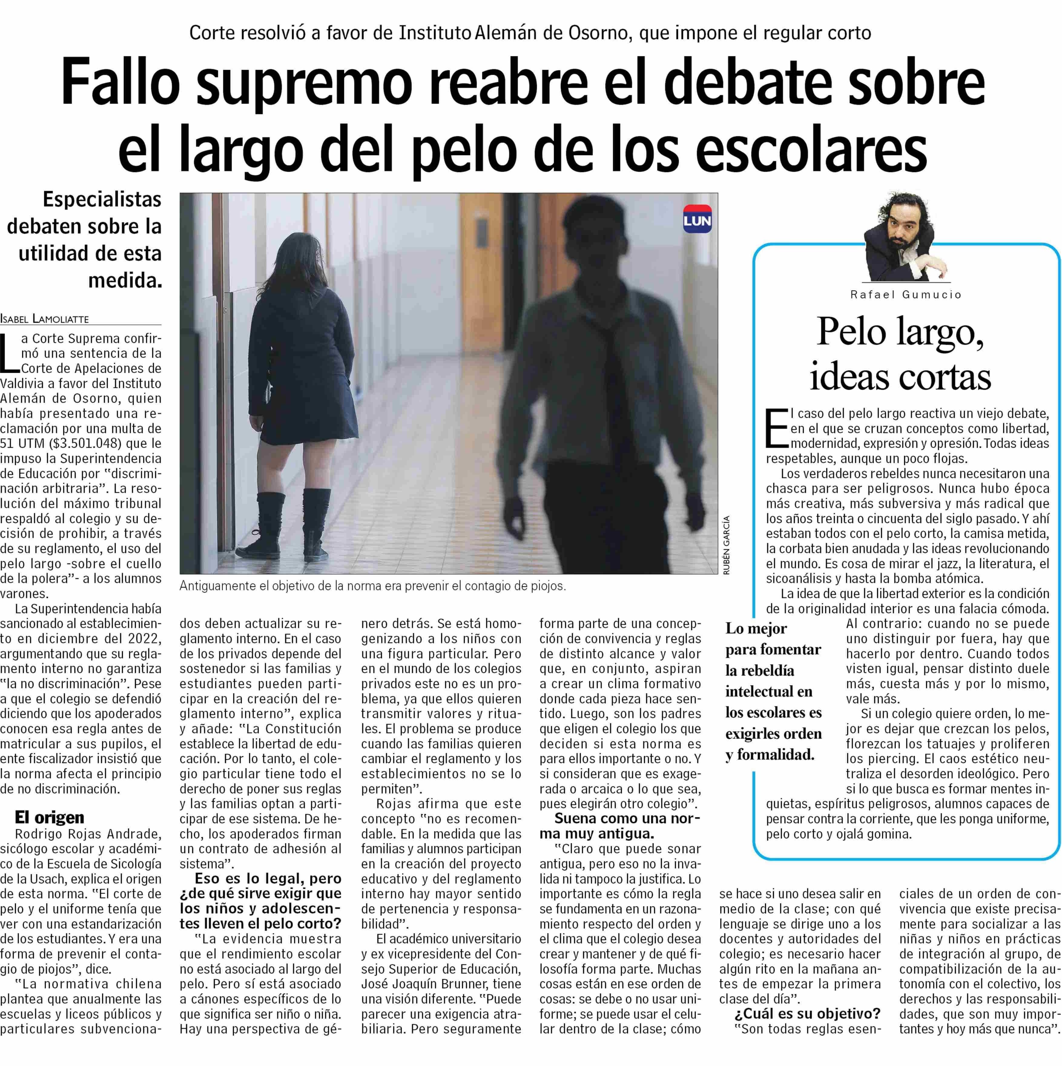 | Título: | Fallo supremo reabre el debate sobre el largo del pelo de los escolares |