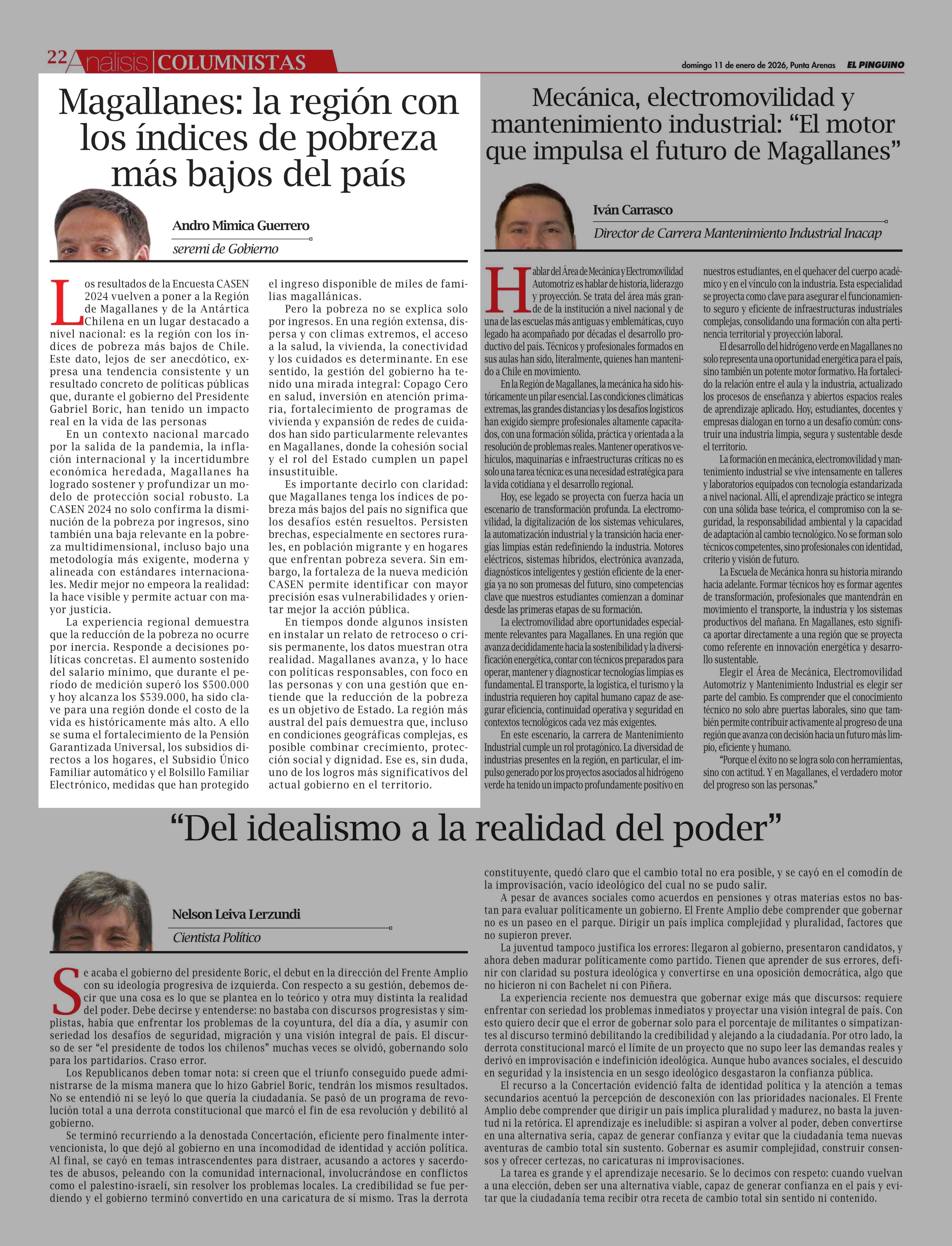 Fecha: 11-01-2026 Sector: Columnas de Opinión Región: Región de Magallanes y de la Antártica Chilena