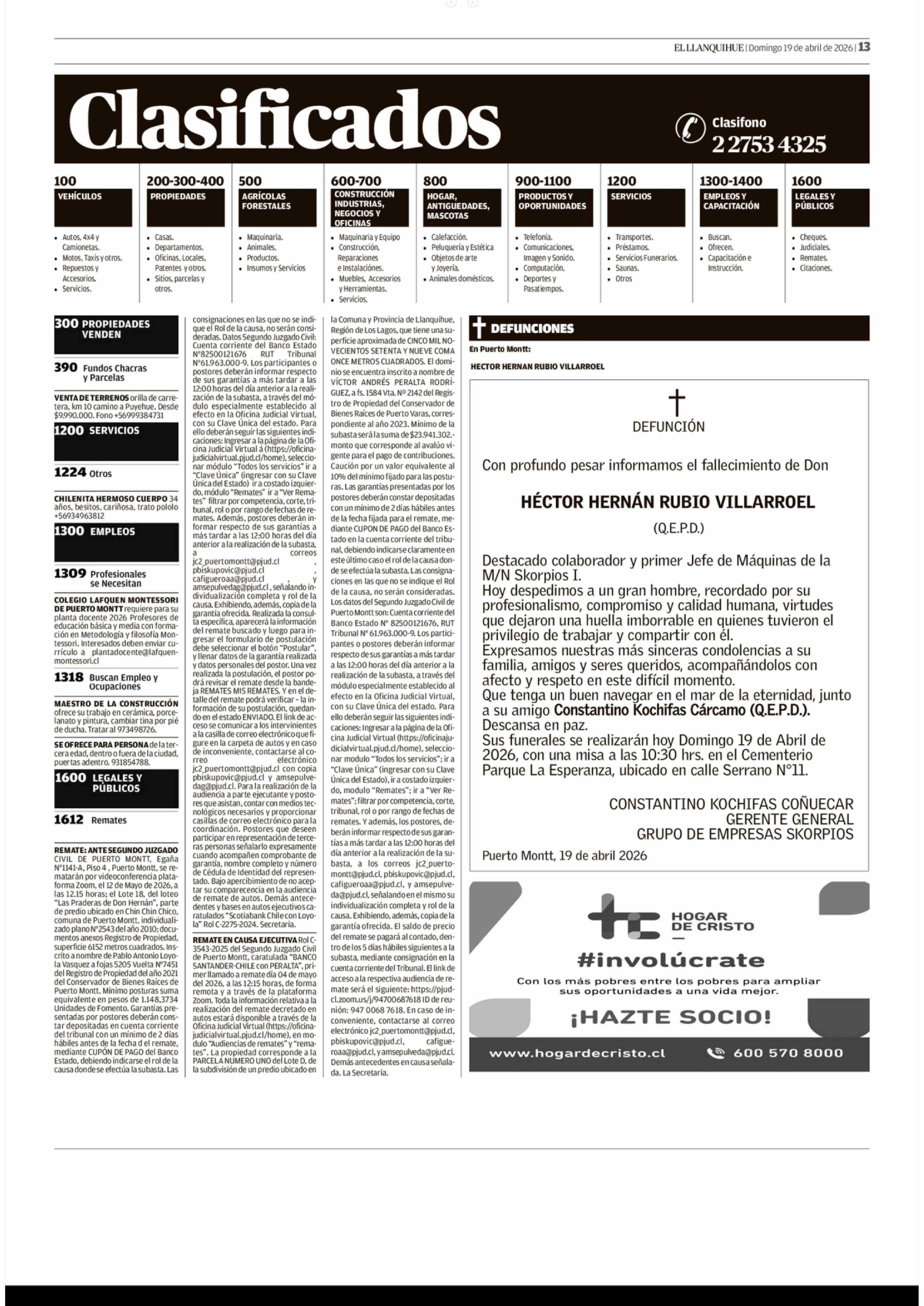 Aviso Ayuda Social: HOGAR DE CRISTO 19-04-2026 El Llanquihue |
