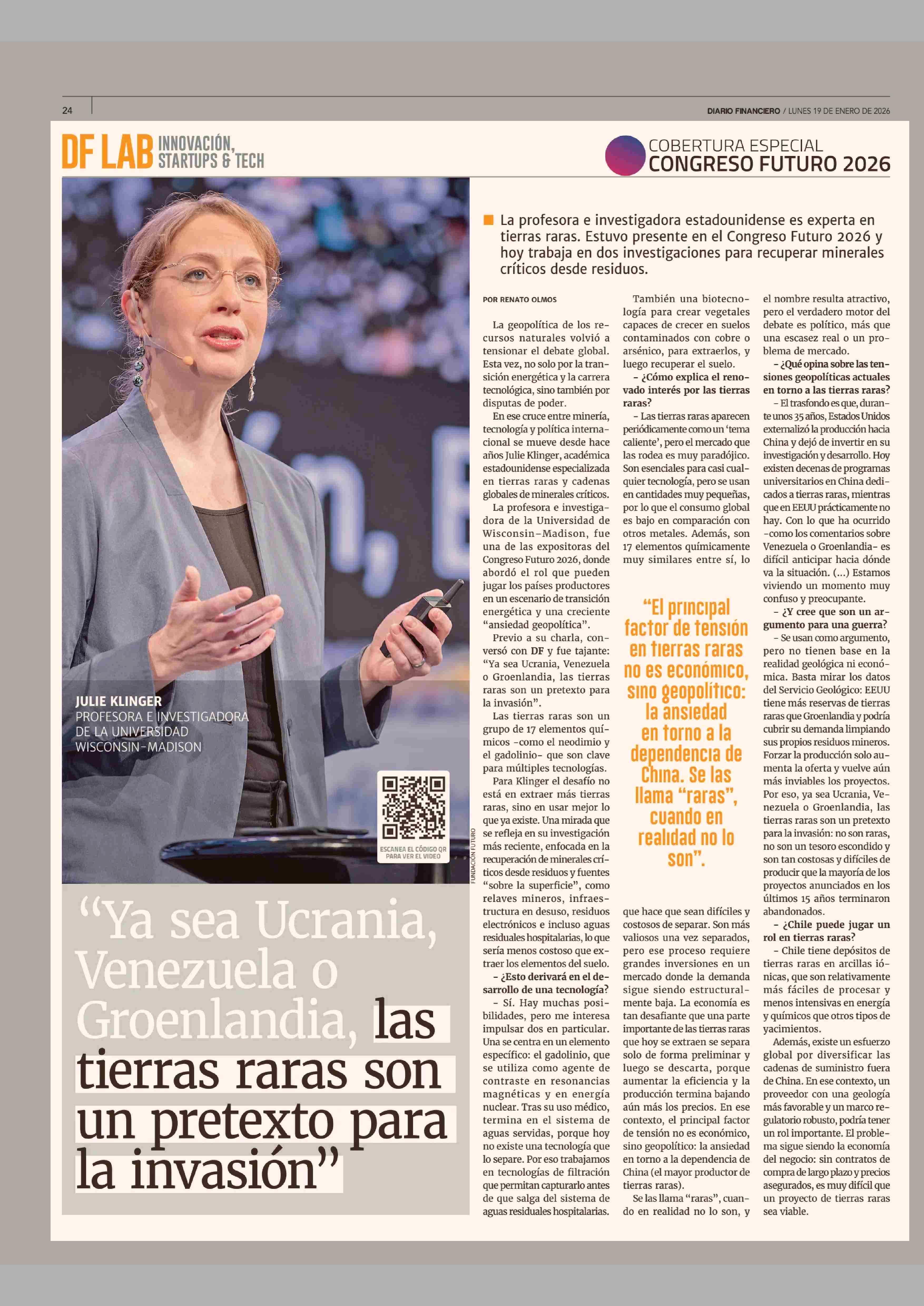 "Ya sea Ucrania, Venezuela o Groenlandia, las tierras raras son un pretexto para la invasión" 19-01-2026 Diario Financiero |