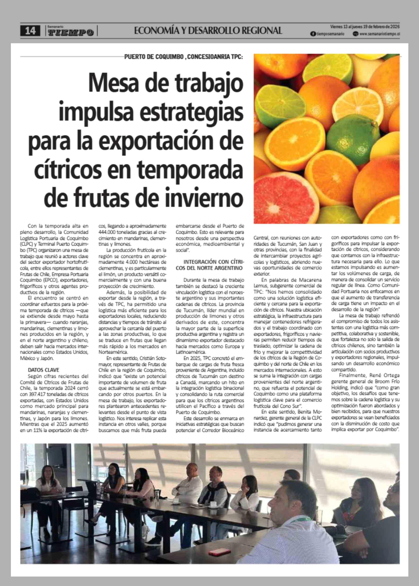 Mesa de trabajo impulsa estrategias para la exportación de cítricos en temporada de frutas de invierno 13-02-2026 Semanario Tiempo |