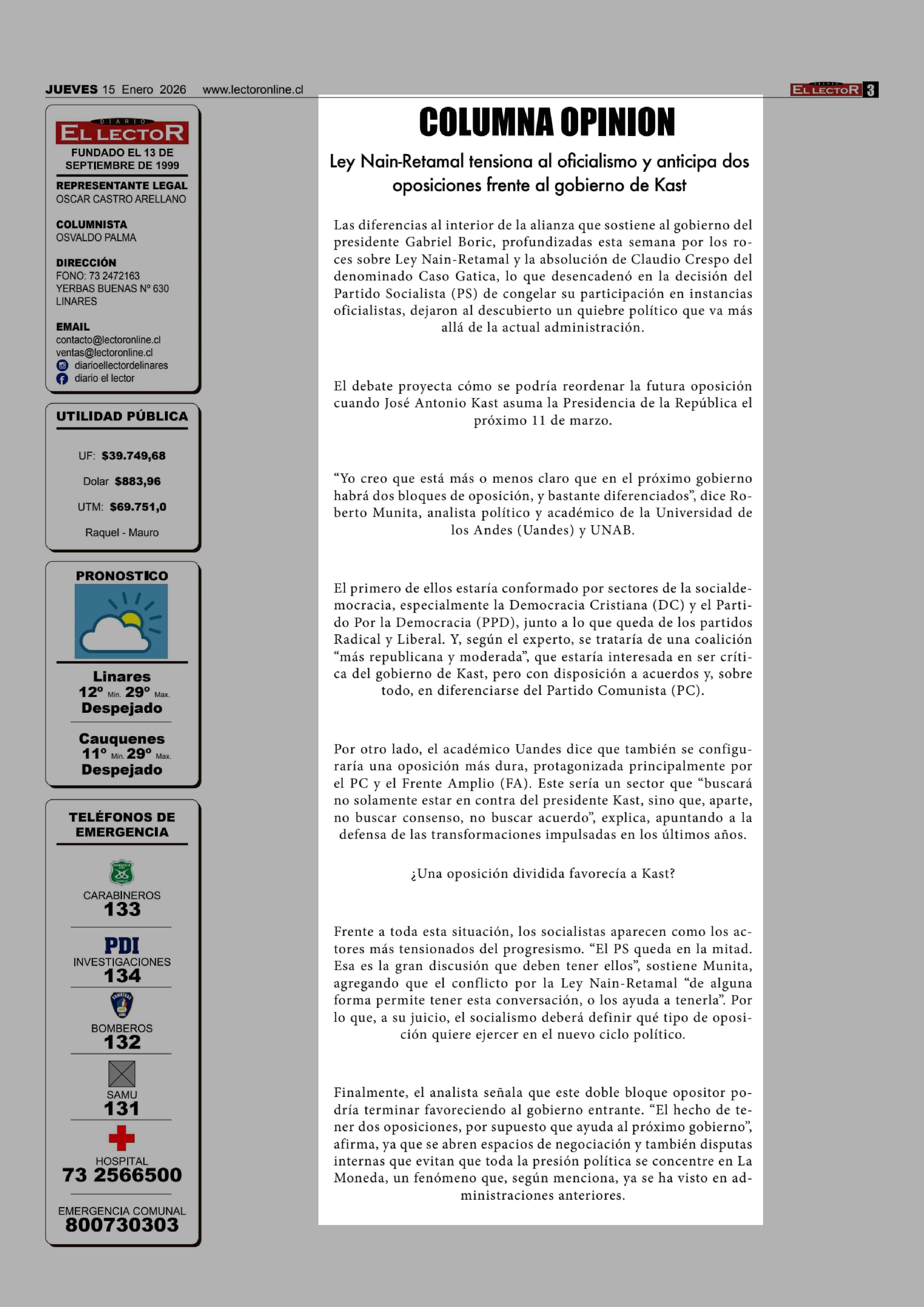 | Fecha: | 15-01-2026 | Sector: | Columnas de Opinión | Región: | Región del Maule |