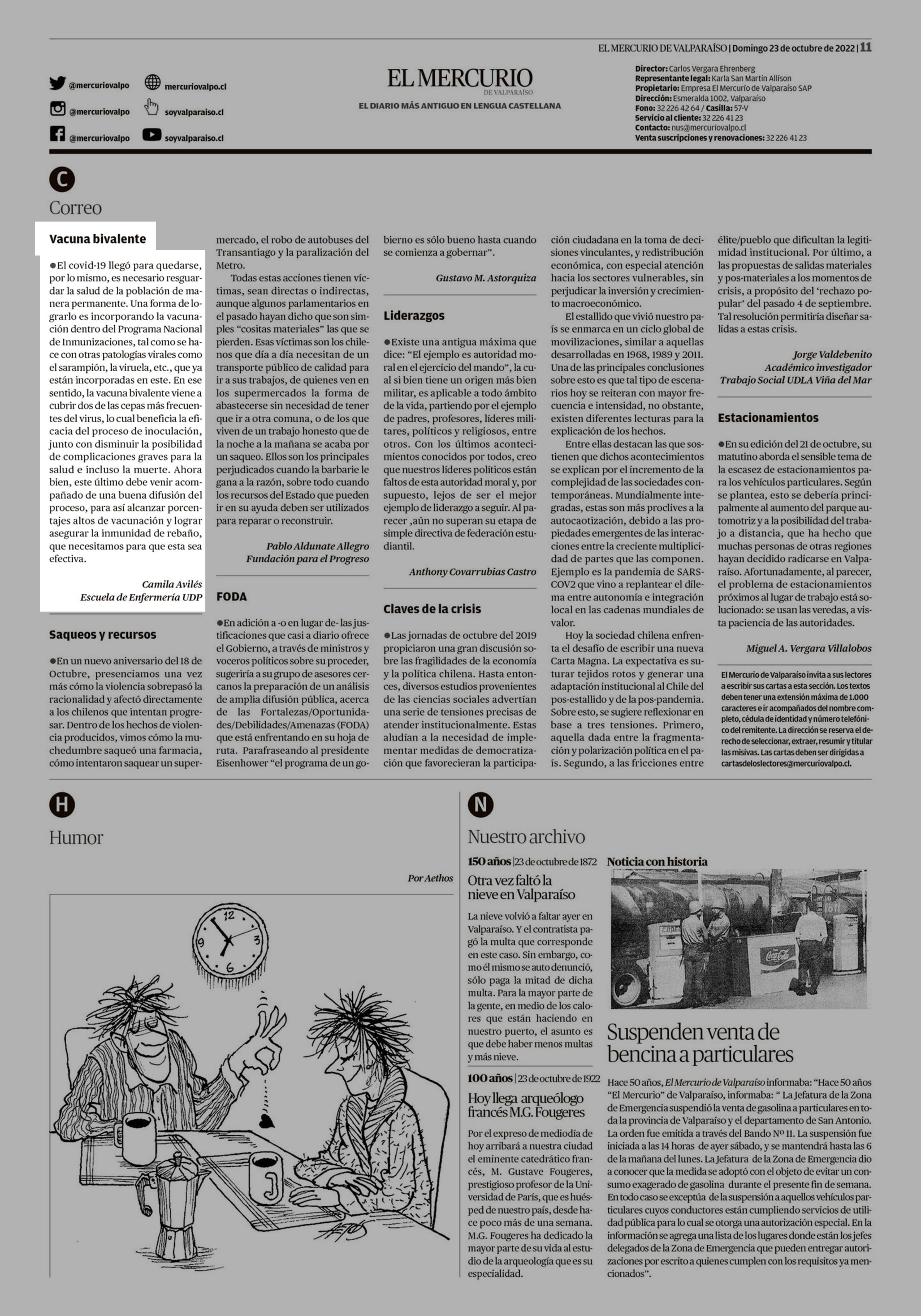 Vacuna bivalente 23-10-2022 El Mercurio de Valparaíso |