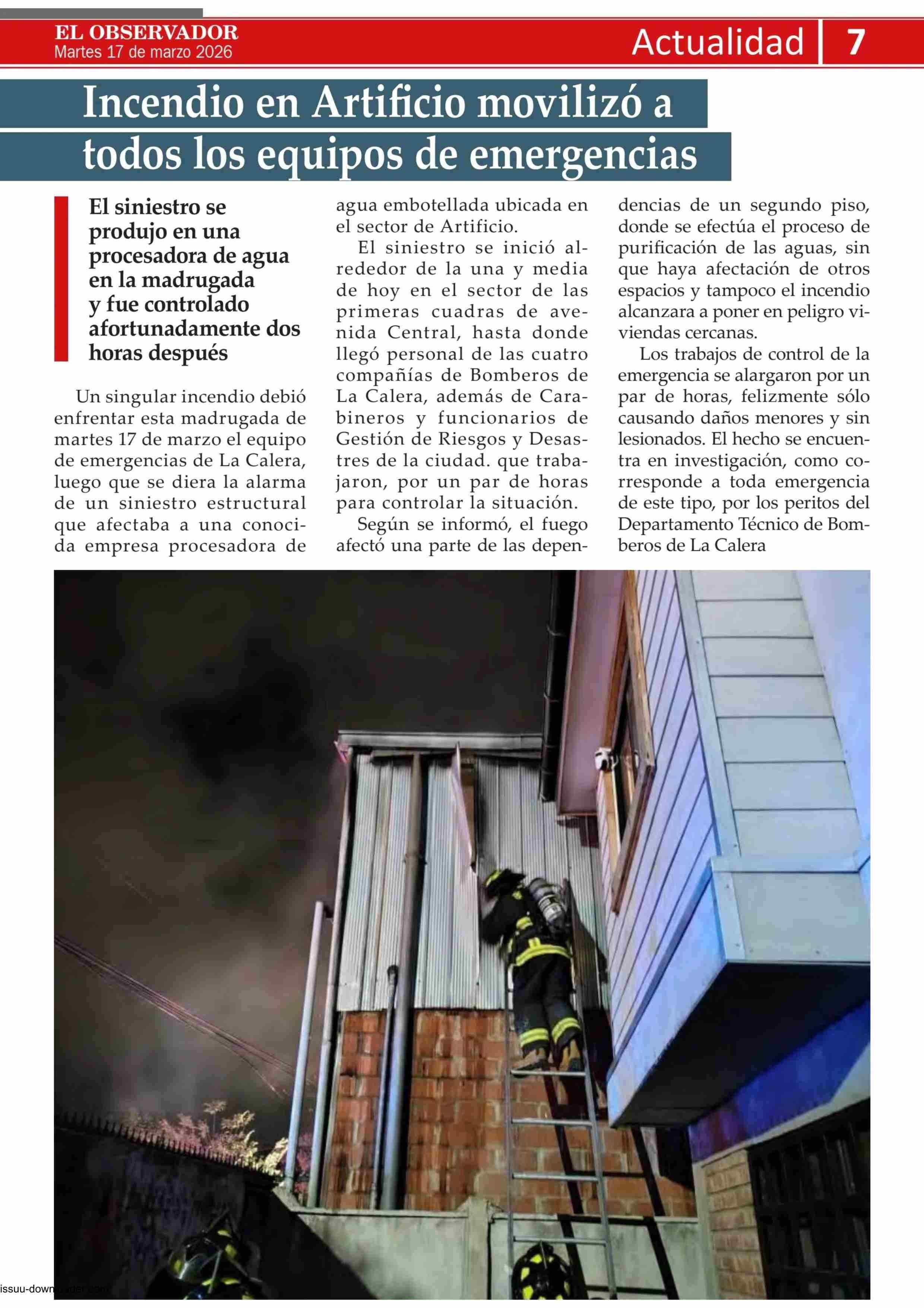 Incendio en Artificio movilizó a todos los equipos de emergencias 17-03-2026 El Observador Vespertino |