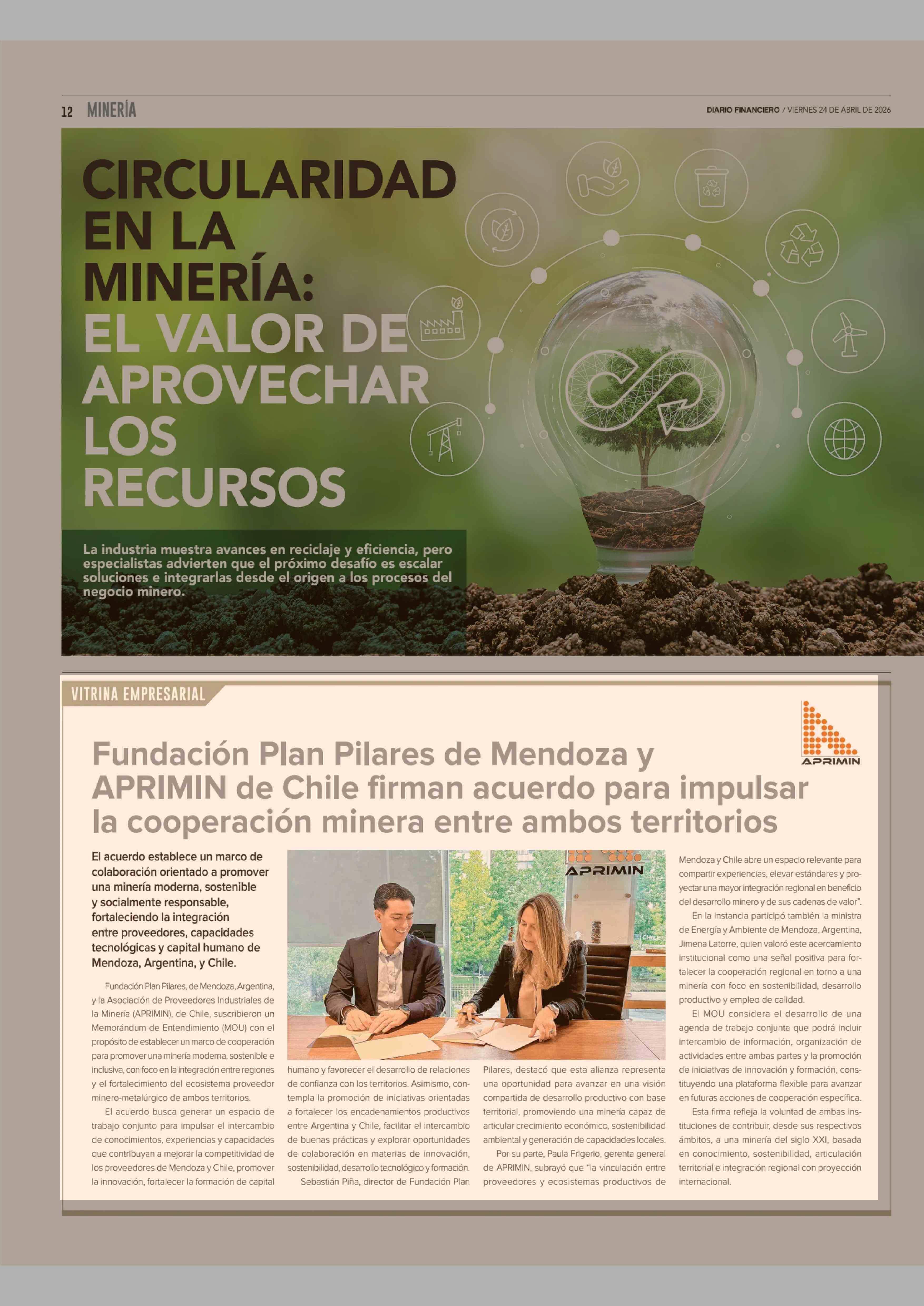 Título: Fundación Plan Pilares de Mendoza y APRIMIN de Chile firman acuerdo para impulsar la cooperación minera entre ambos territorios