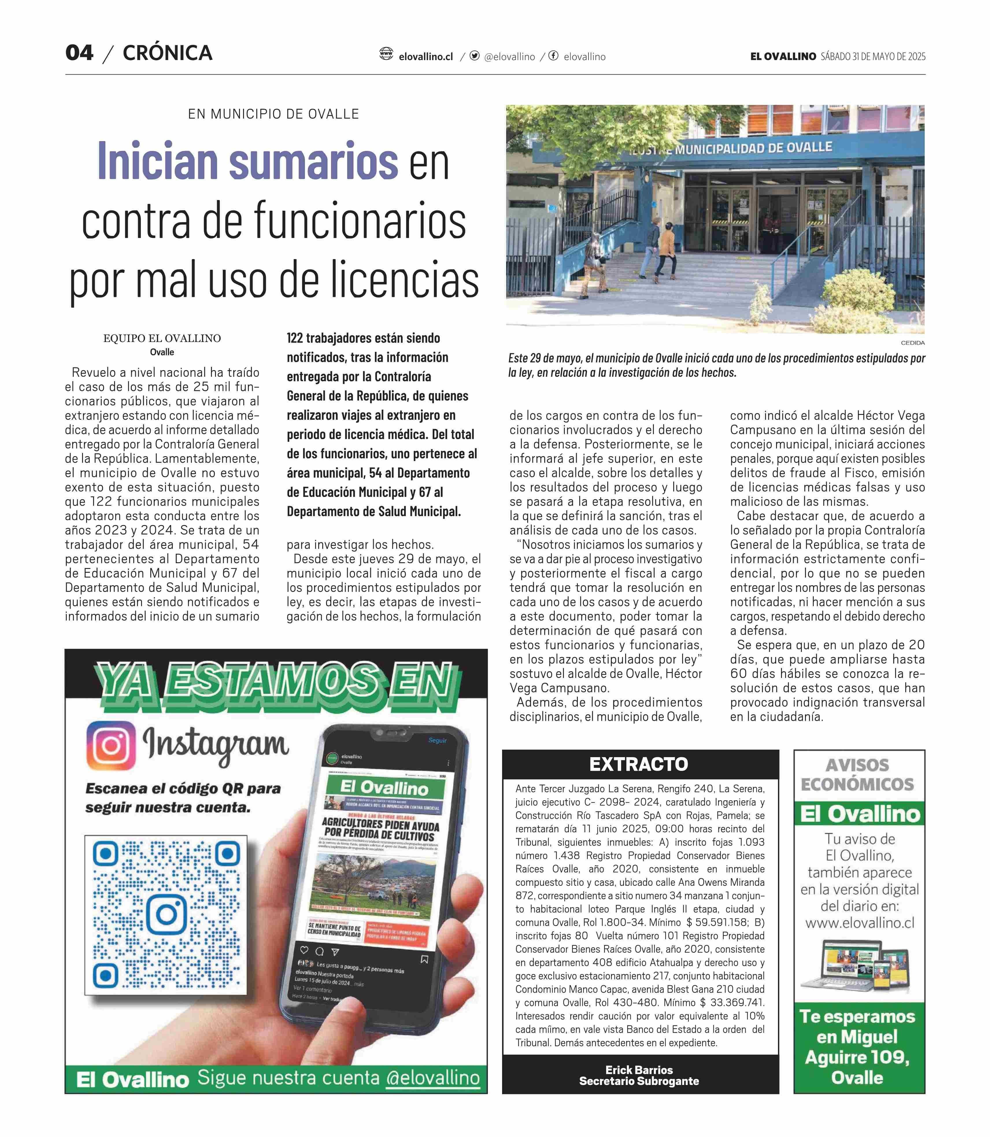 Inician sumarios en contra de funcionarios por mal uso de licencias 31-05-2025 El Ovallino |