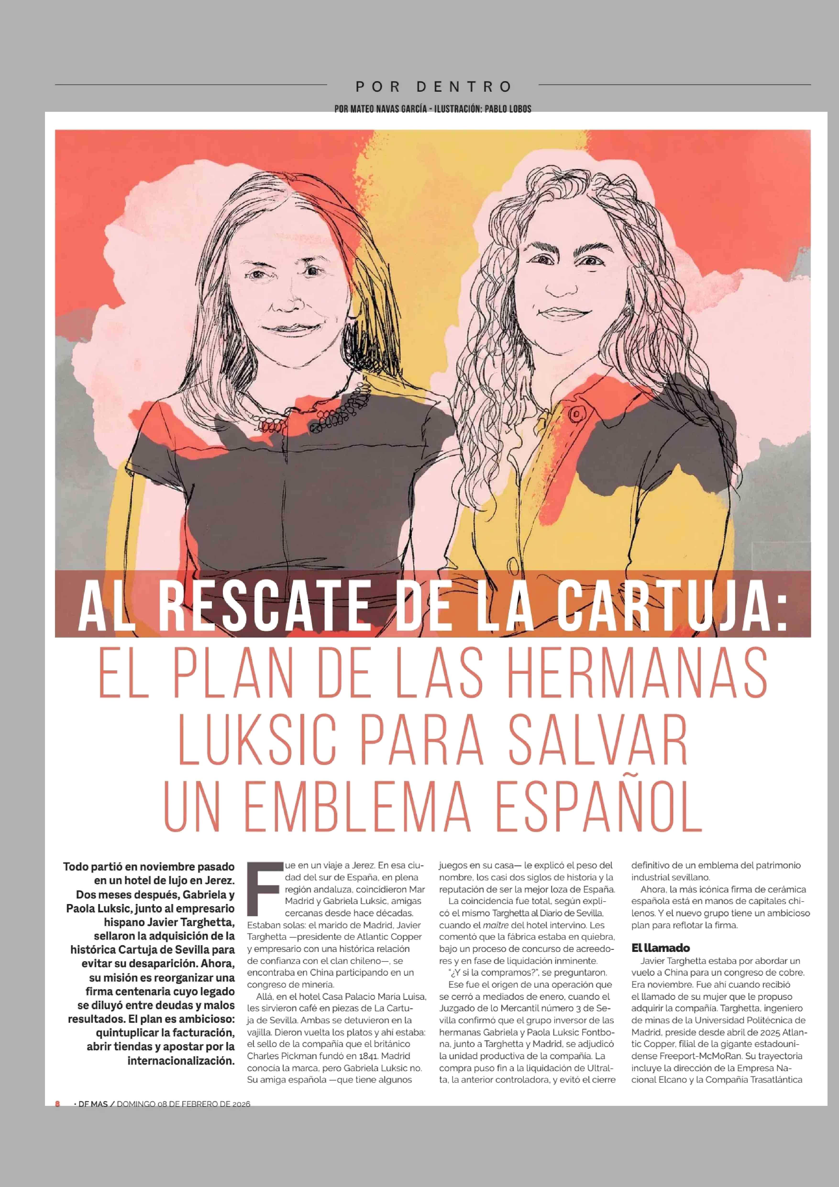 AL RESCATE DE LA CARTUJA: EL PLAN DE LAS HERMANAS LUKSIC PARA SALVAR UN EMBLEMA ESPAÑOL 08-02-2026 Diario Financiero |
