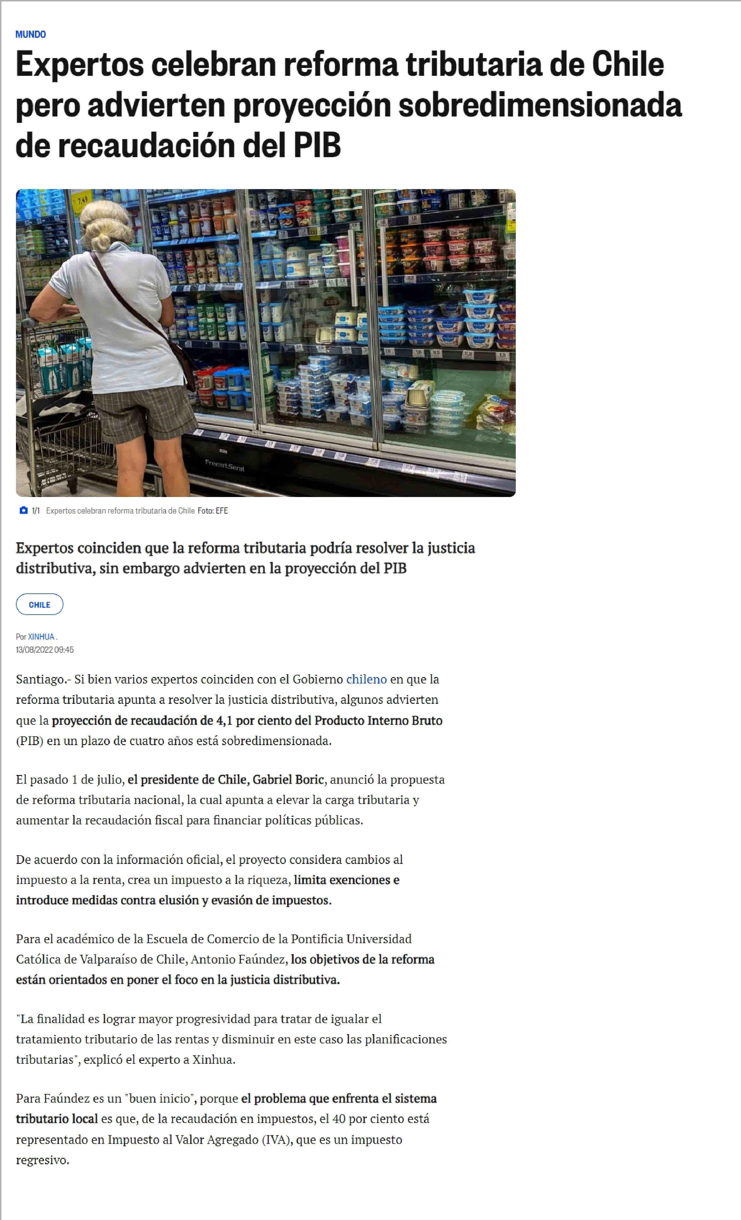 Expertos celebran reforma tributaria de Chile pero advierten proyección sobredimensionada de recaudación del PIB 13-08-2022 Debate.com.mx |