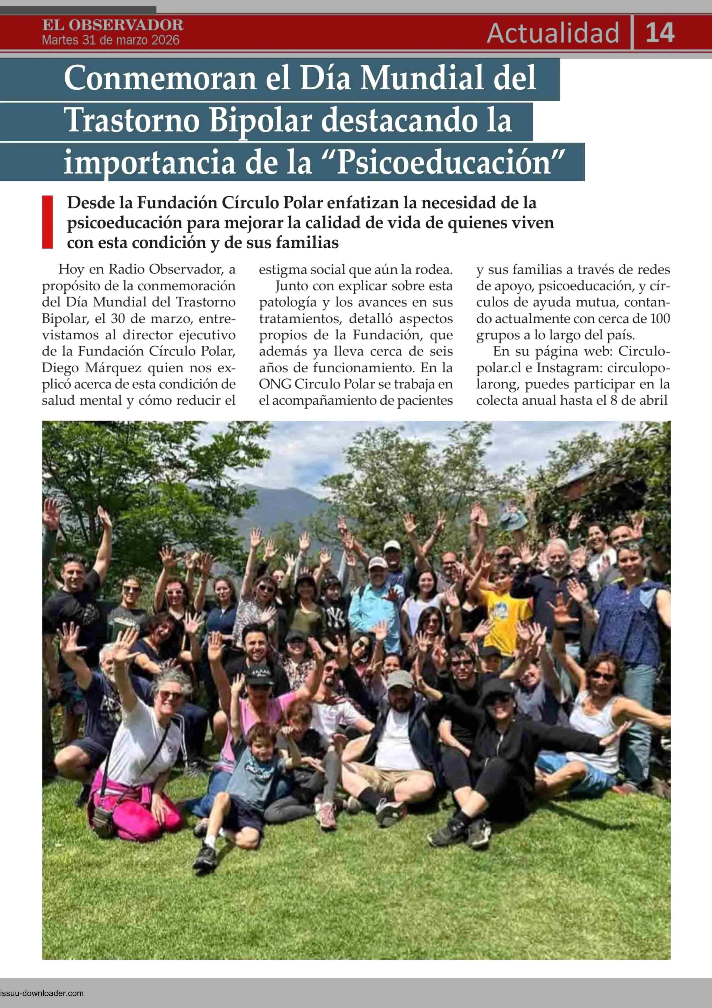 Conmemoran el Dia Mundial del Trastorno Bipolar destacando la importancia de la “Psicoeducación” 31-03-2026 El Observador Vespertino |