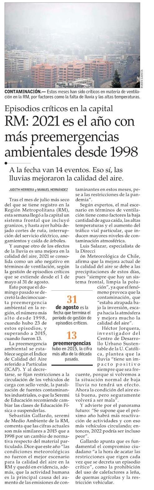 RM: 2021 es el año con más preemergencias ambientales desde 1998 20-08-2021 El Mercurio |