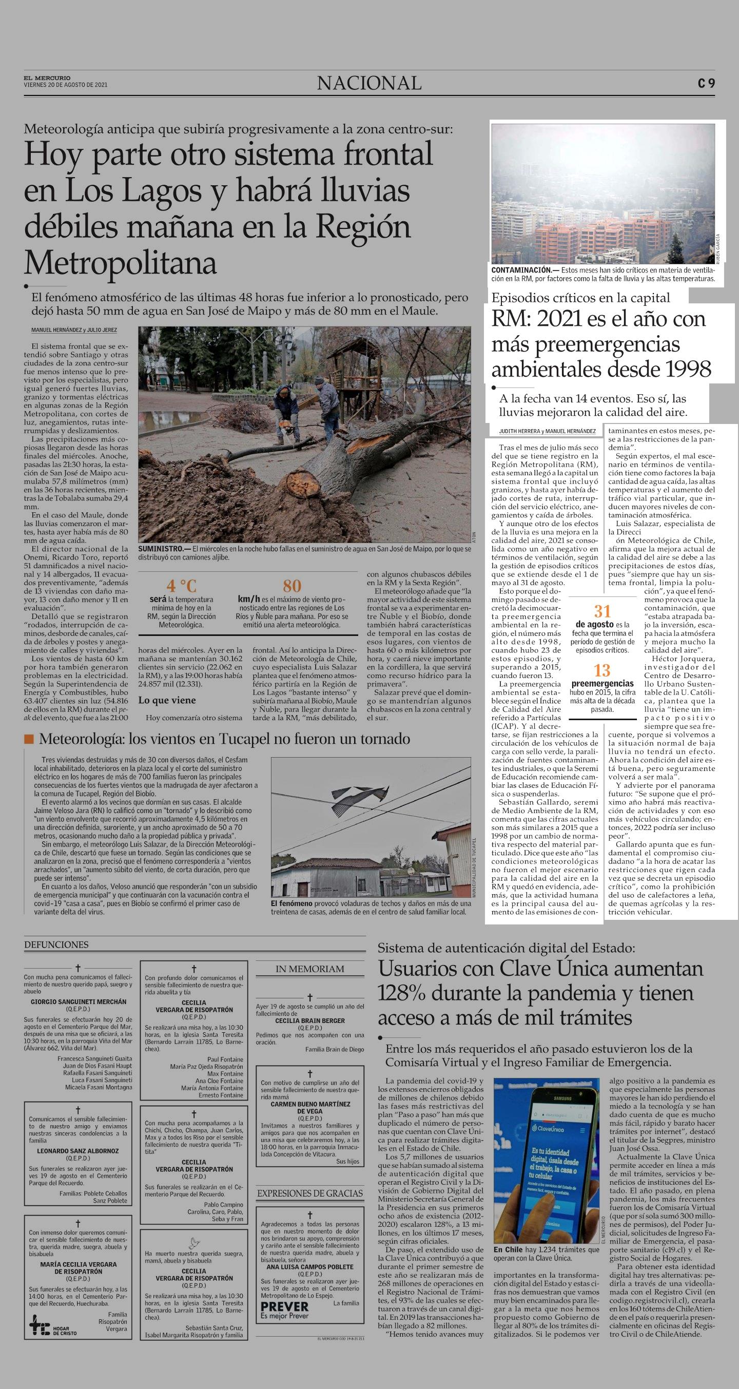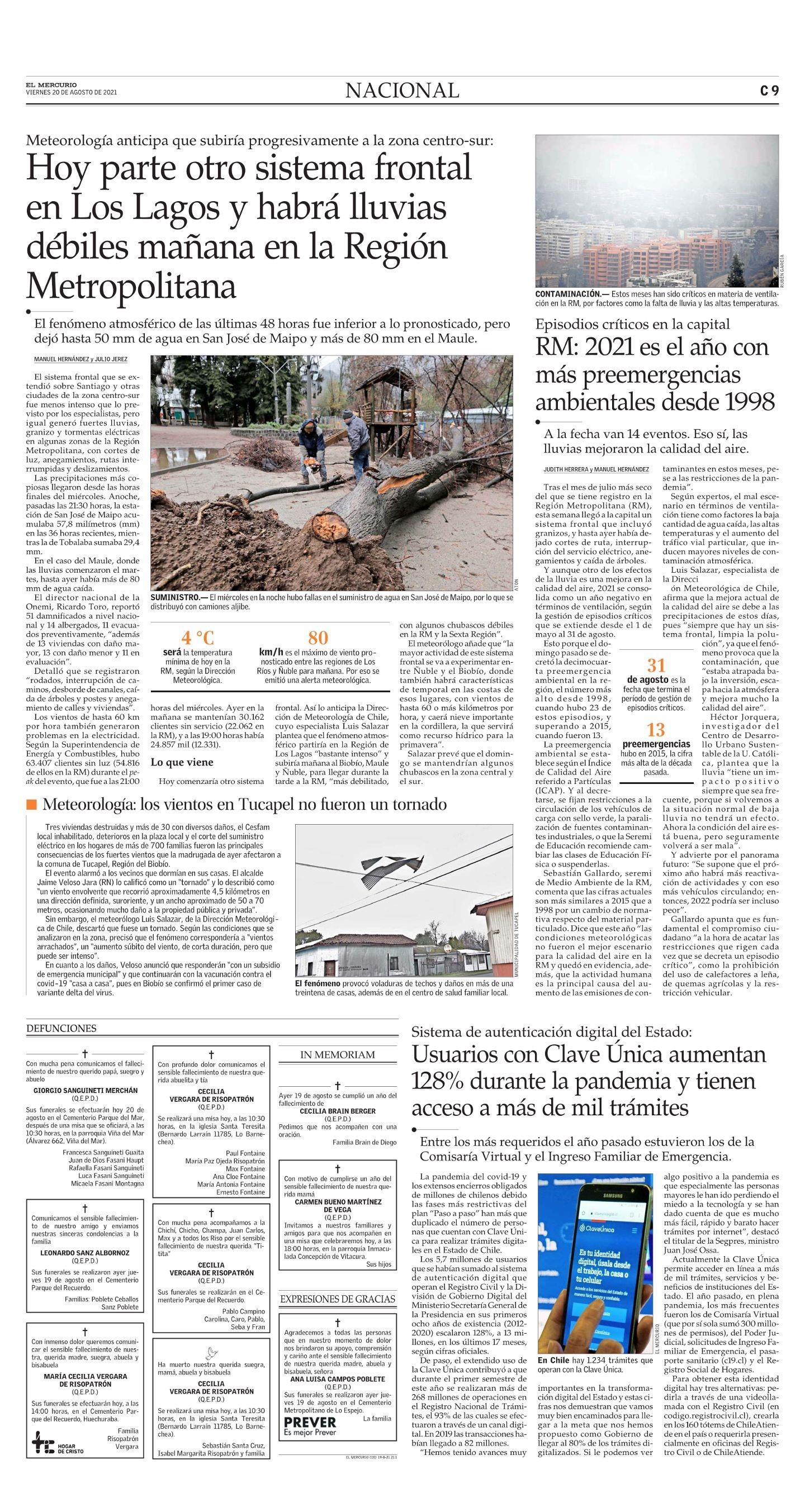 | Fecha: | 20-08-2021 | Sector: | Nacional | Región: | Región Metropolitana de Santiago |