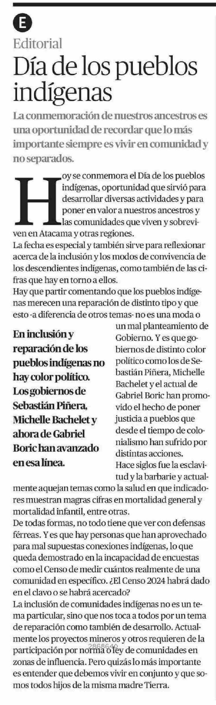 Editorial: Día de los pueblos indígenas 21-06-2025 El Diario de Atacama |